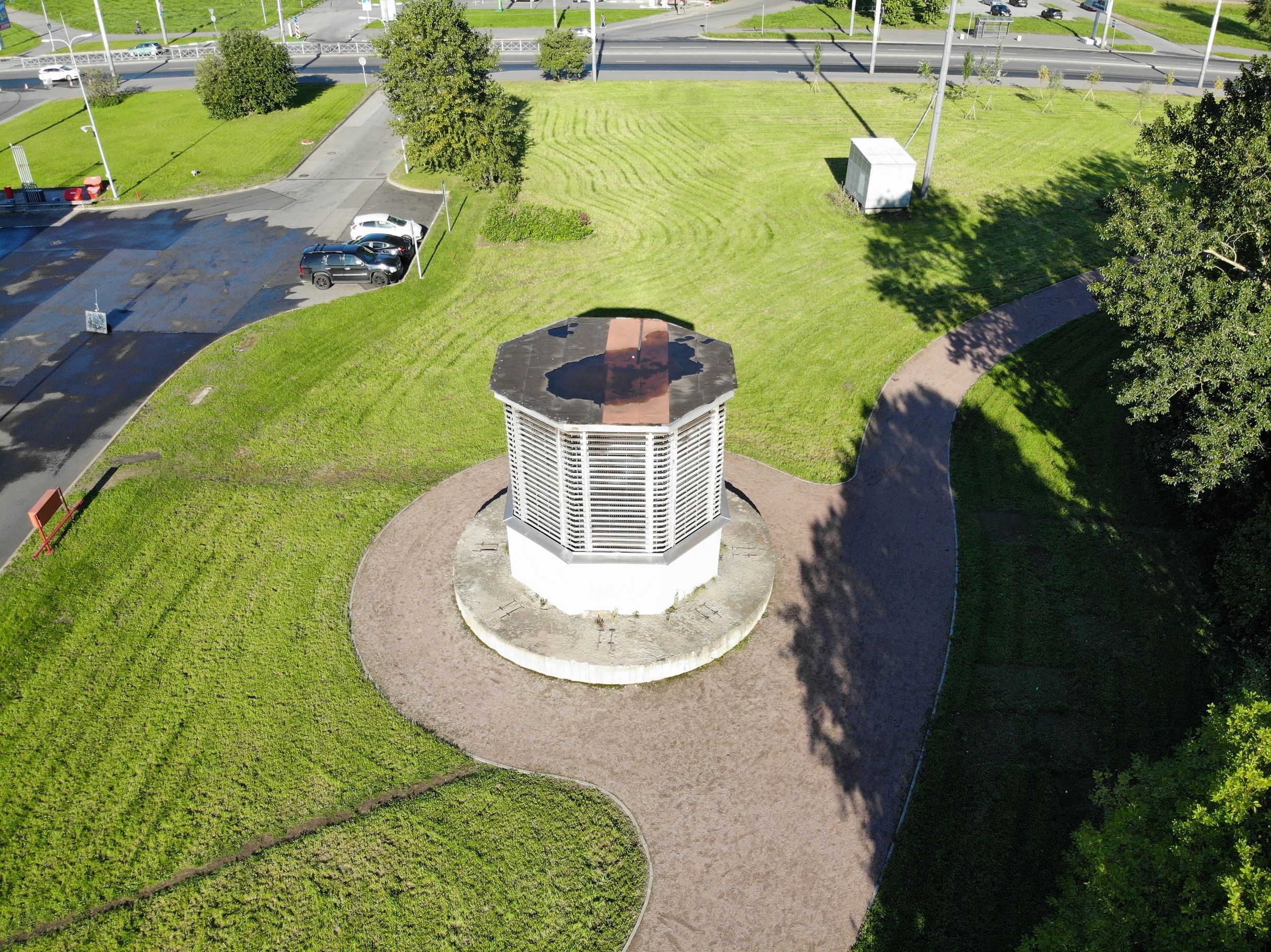 Между прочим, в проекте типового венткиоска тех лет уклон указан - 1:30. Видимо во время ремонта кровли поленились снова сделать стяжку с уклоном.