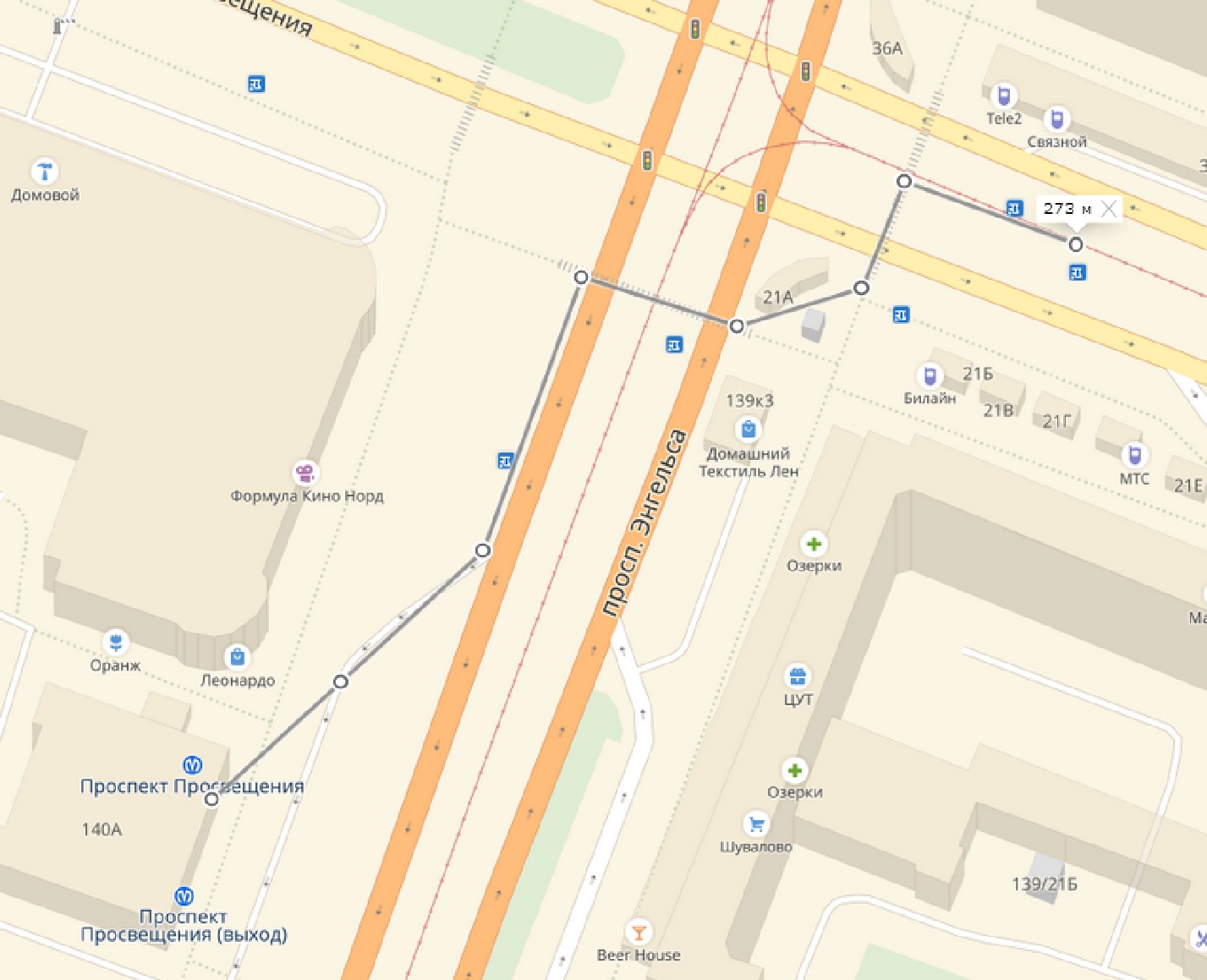 Kaamoos писал(а):Что касаемо самого Просвета - там первая остановка 180 м (от выхода из метро). Вторая - 270 м.