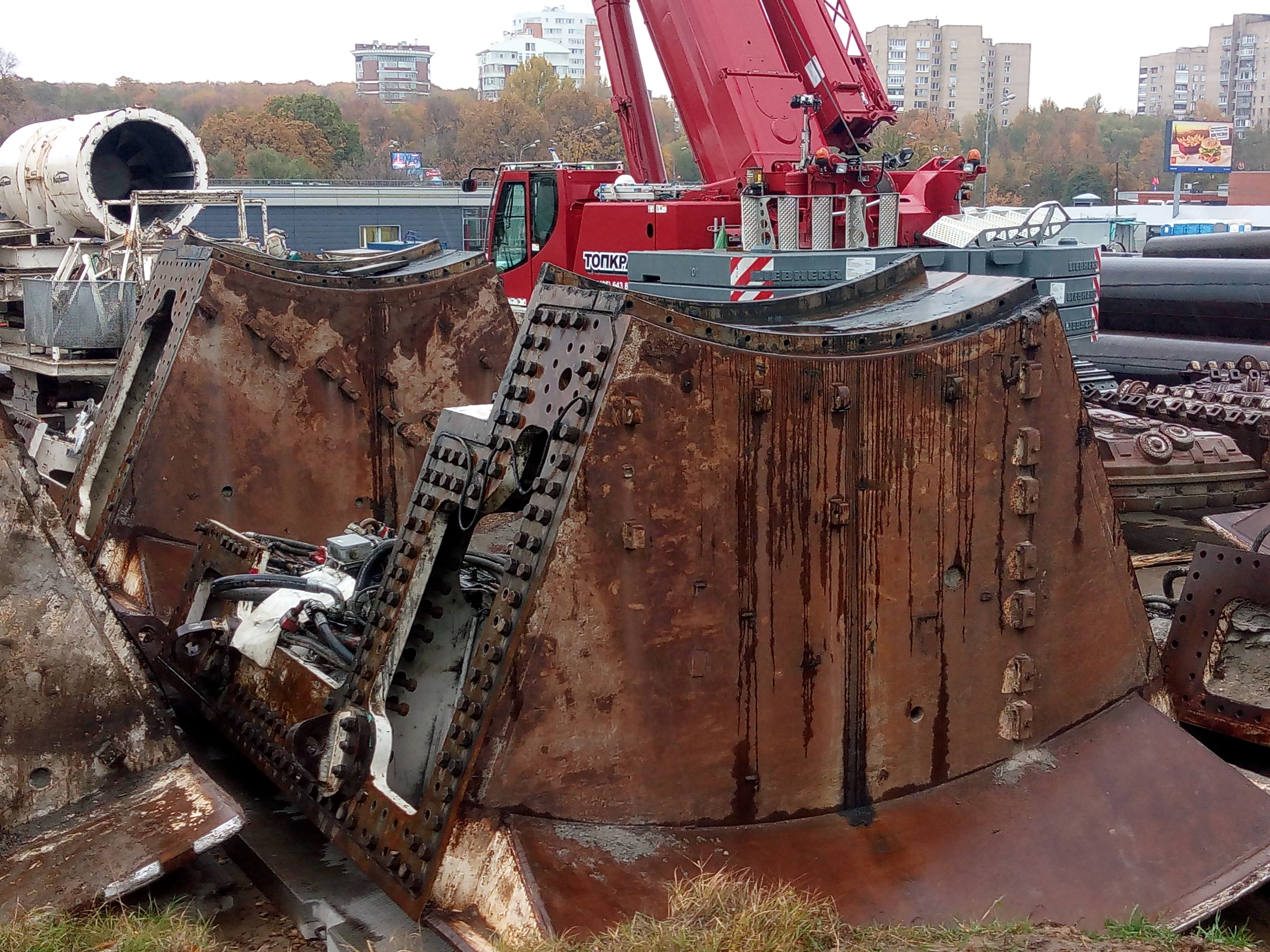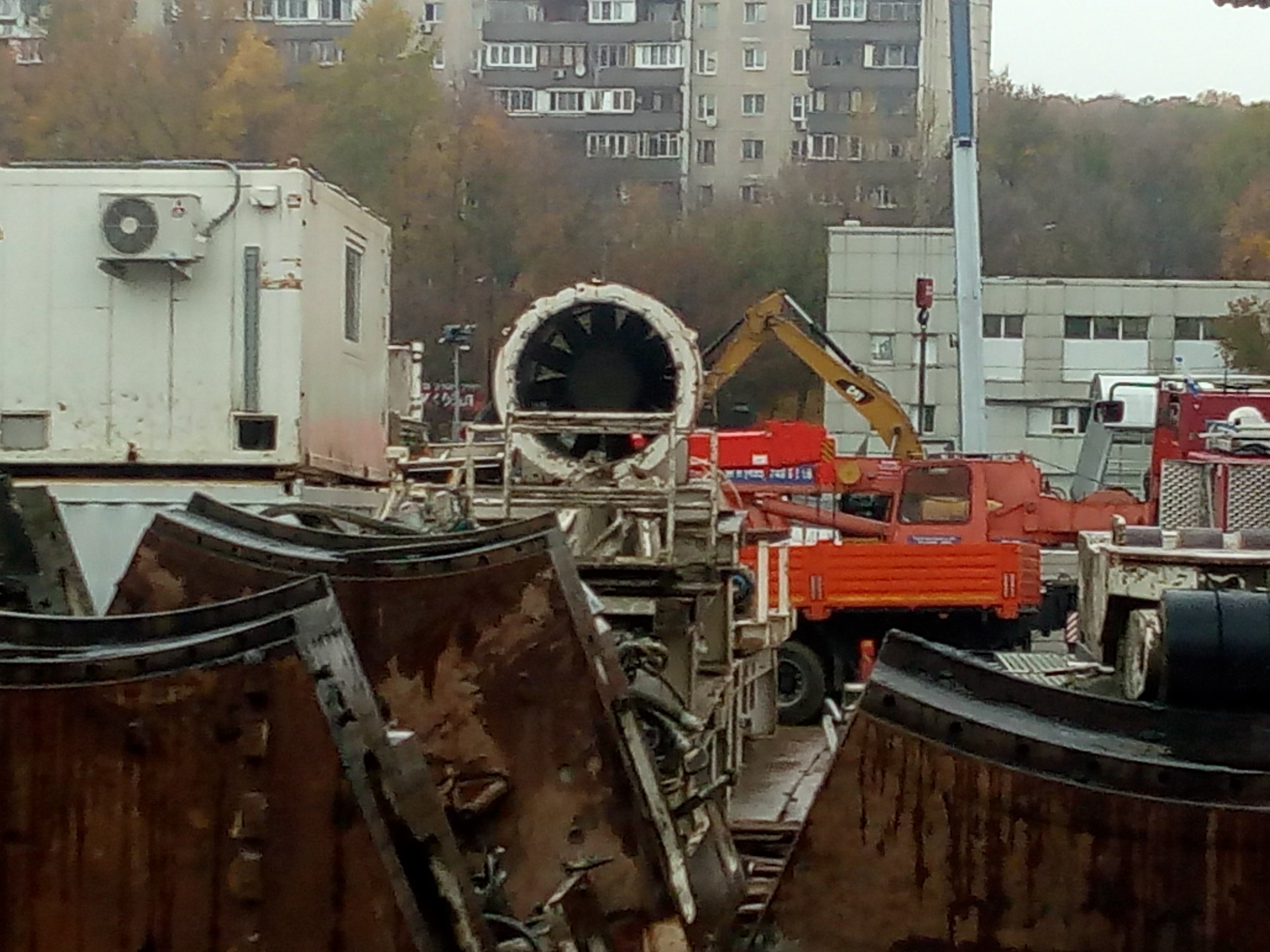 разобранном состоянии на стартовом котловане на Туристской улице, в Москве. После окончания проходки тоннелей на участке