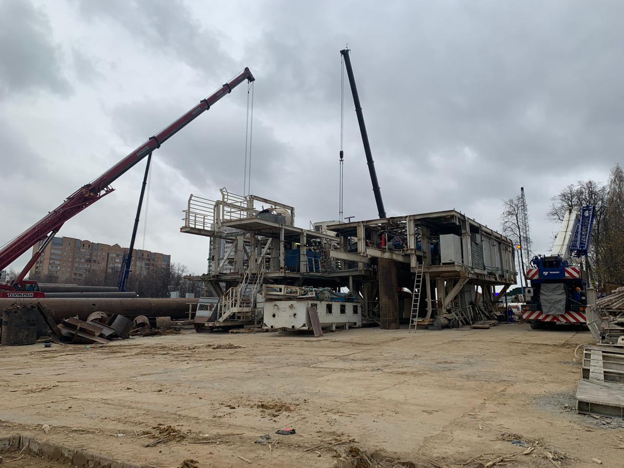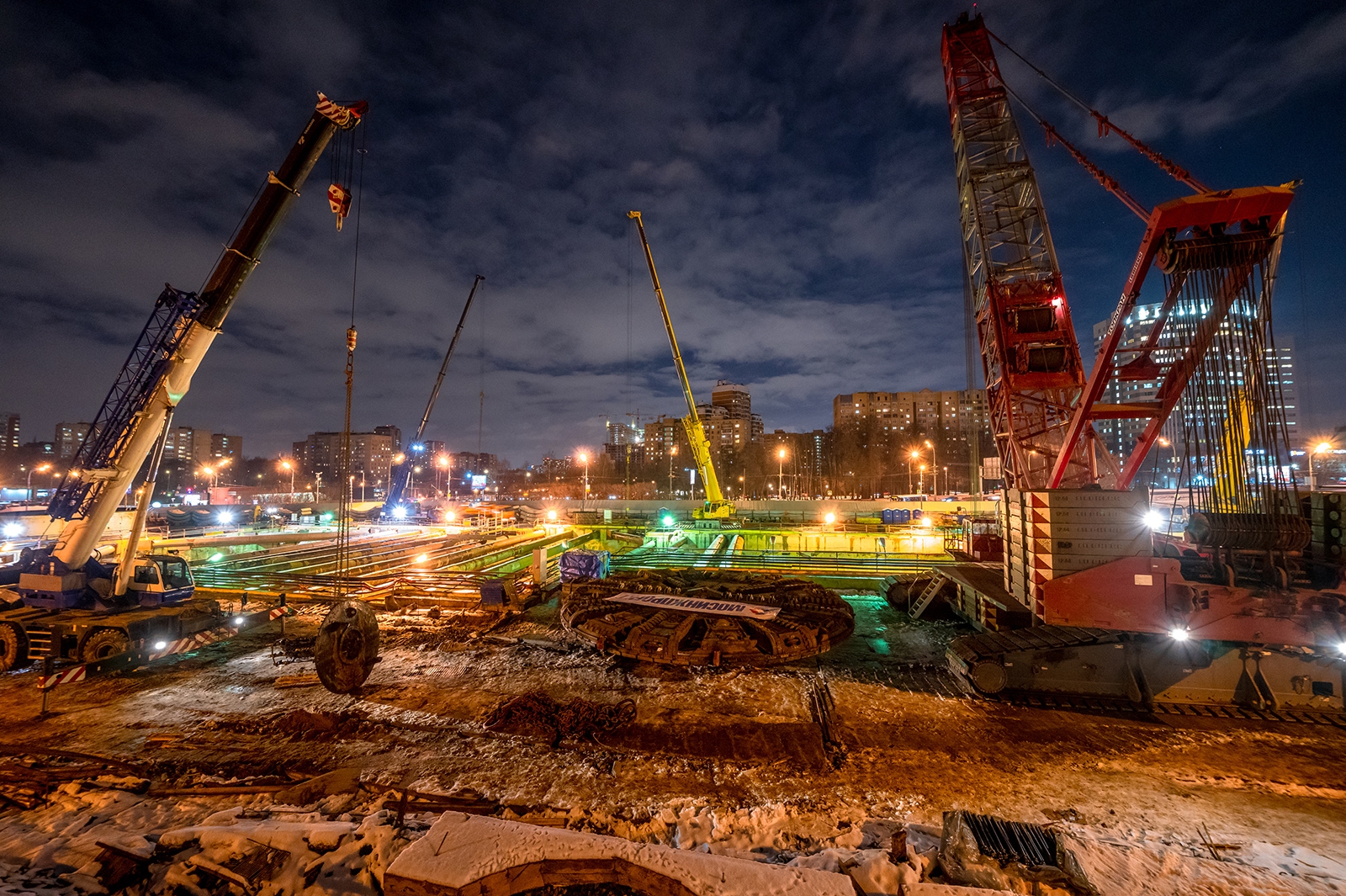 В Москве на площадке стартового котлована станции «Можайская» продолжаются работы по монтажу ТПМК «Надежда»