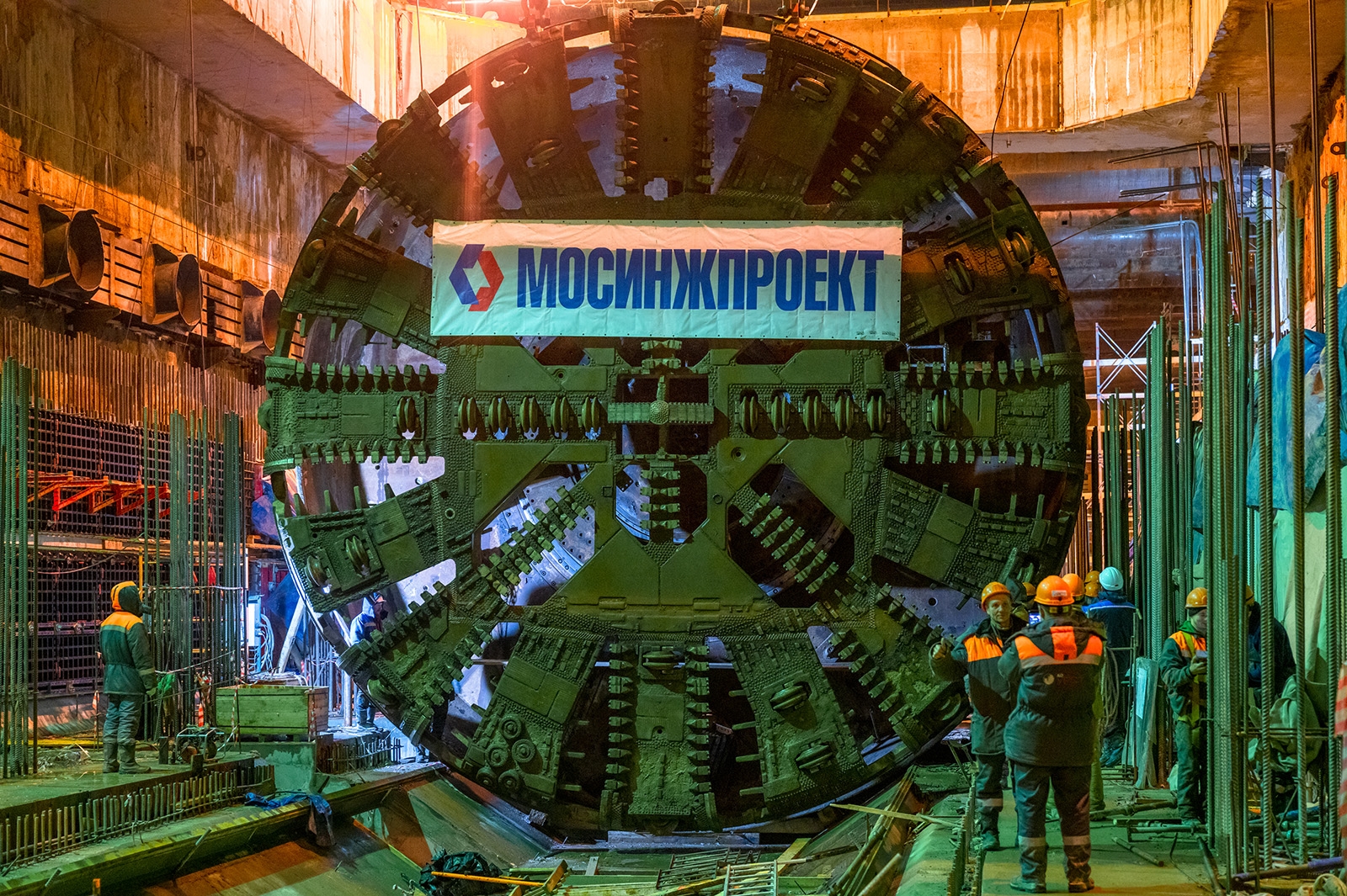 Все крупногабаритные элементы опущены в котлован, откуда в феврале «Надежда» начнет совсем неженский путь длиной три километра до переходной камеры за станцией «Давыдково».