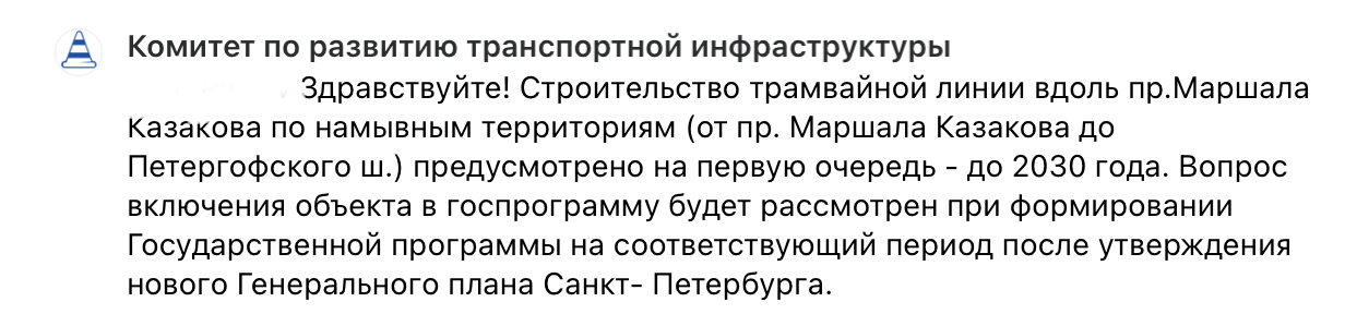 Комитету по развитию транспортной инфраструктуры следовало бы знать, что проспекта Маршала Казакова не существует.