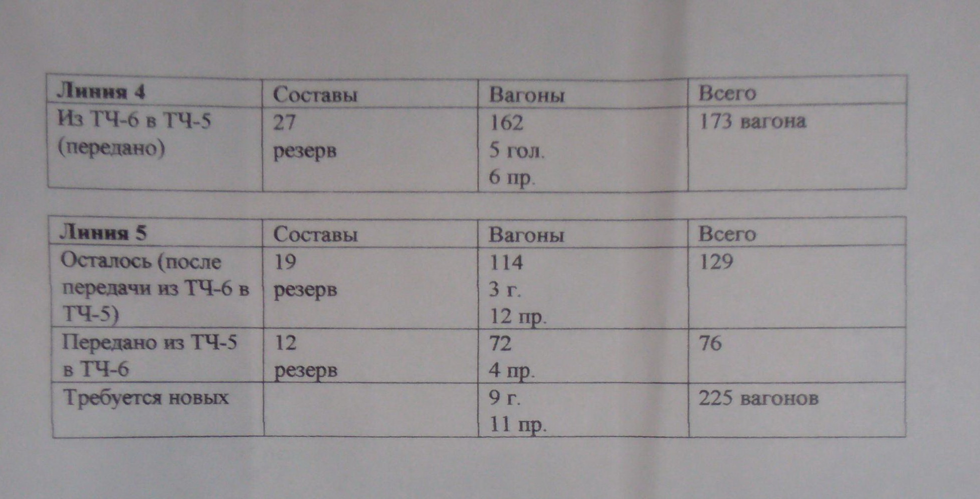 Тем не менее эта раскладка была предварительной. В ней не учитывалось, что часть составов с четвёртой линии будет обслуживать третью. Снять их сейчас нельзя, видимо всё-таки передадут кое-какие составы дополнительно из десятитысячников, может и так как Stranix посчитал.