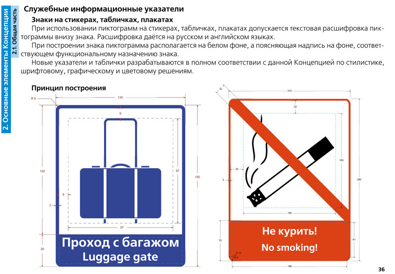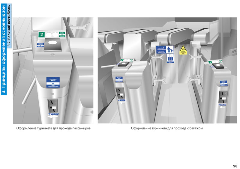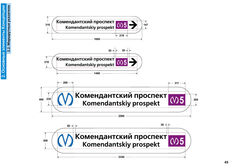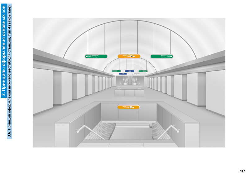 На данный момент "Концепция информационной и пространственно-ориентирующей среды на территории ГУП «Петербургский метрополитен»" состоит из одного тома объёмом 131 страница. Она включает в себя общие моменты (шрифты, пиктограммы, примеры размещения носителей и т.д.). По каждой конкретной станции делаются отдельные проекты.
