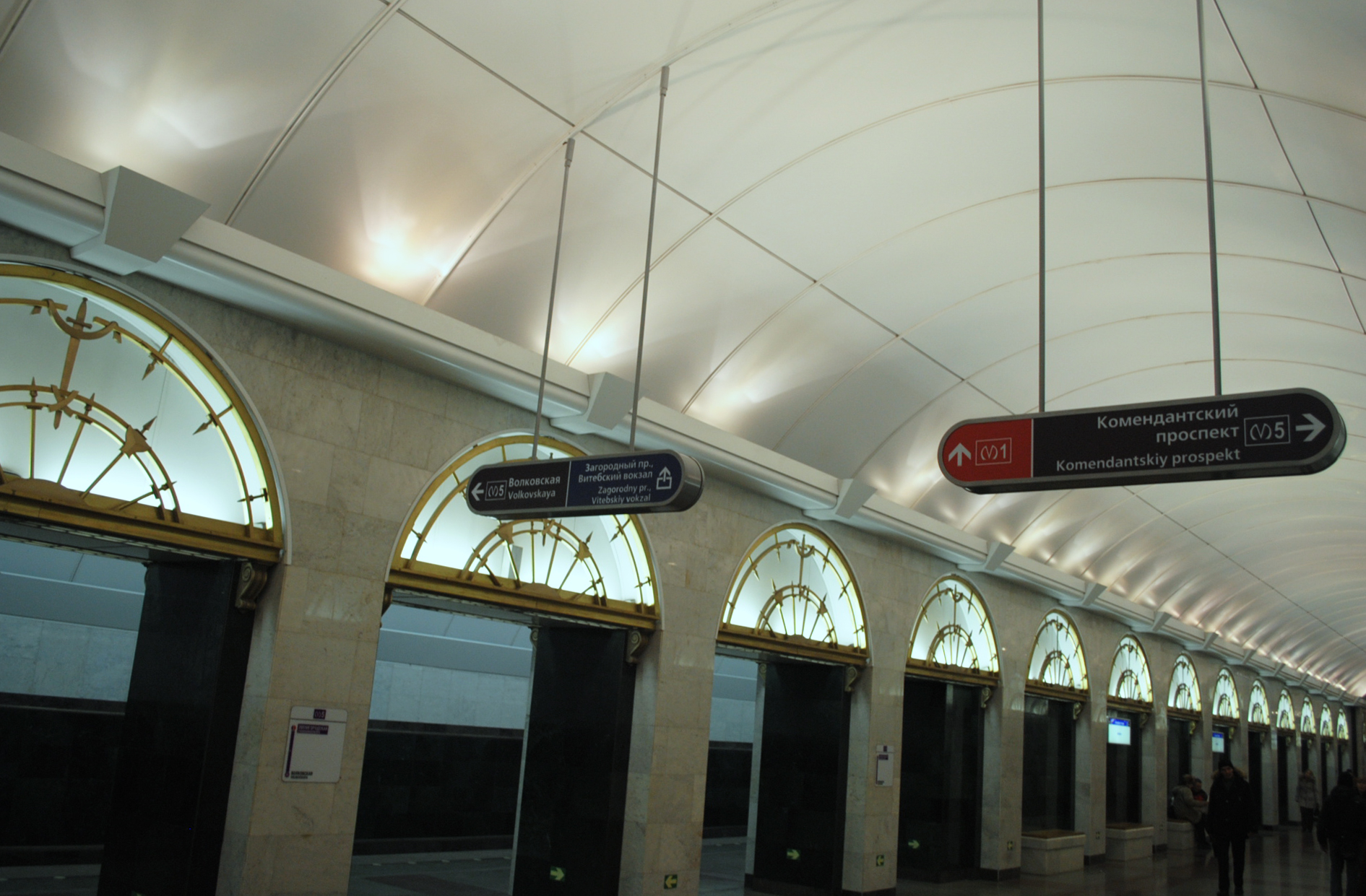Сегодня появились лайтбоксы "Комендантский" , "Волковская", а также указатель на переходе на Пушкинскую, большую часть которого занимает надпись "На Загородный проспект и Витебский вокзал", а меньшую - малозаметный указантель на переход на первую линию (малая часть лайтбокса с символом лестницы и знаком "М1"). Наверное, чтобы запутать врагов.