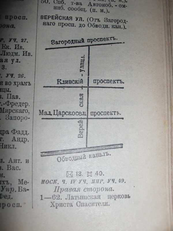 Ув господа. Я, кажется, обдернулся с расположением этой бывшей Латышской церкви. Дело в том, что если верить приведенным данным и современной нумерации домов, то тогда церковь располагалась на нечетной стороне Верейской улицы, то есть это был протипололожный угол тому, где нынче вентшахта. Вот теперь разыскиваю данные о точной расположении этой церкви. Может у кого есть что сказать по этому поводу. То есть куда выходил торец церкви с розой на фотке: На Верейскую? ( в этом случае вентшахта на ее месте) или на Загородный? ( тогда церковь действительно располагалась на противоположной стороне)