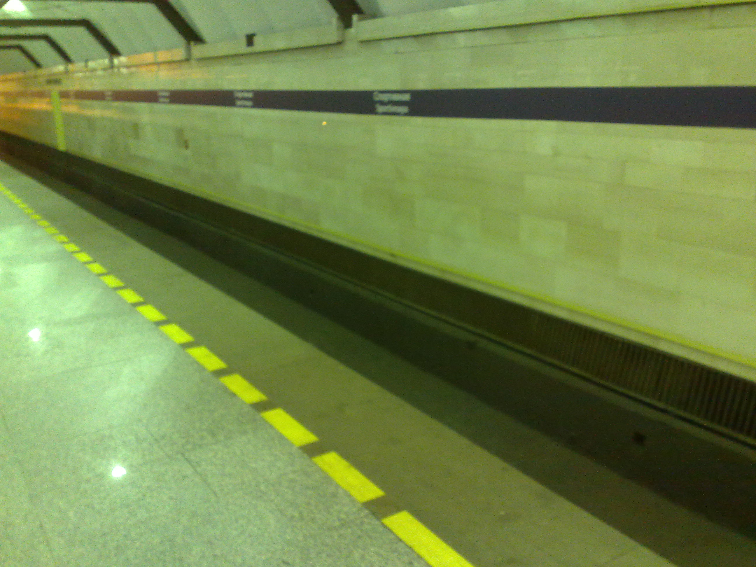 верхний зал, действующая сторона, "классическая" изолента, как писали на форуме ранее: "широкая-широкая, красивая-красивая". наклейки на полу с обоих концов платформы, с действующего они уже приобрели свой рабочий мерзко-грязно-затоптанный вид, с другой стороны, соответственно, девственно чистые. нип полон контрастов.
