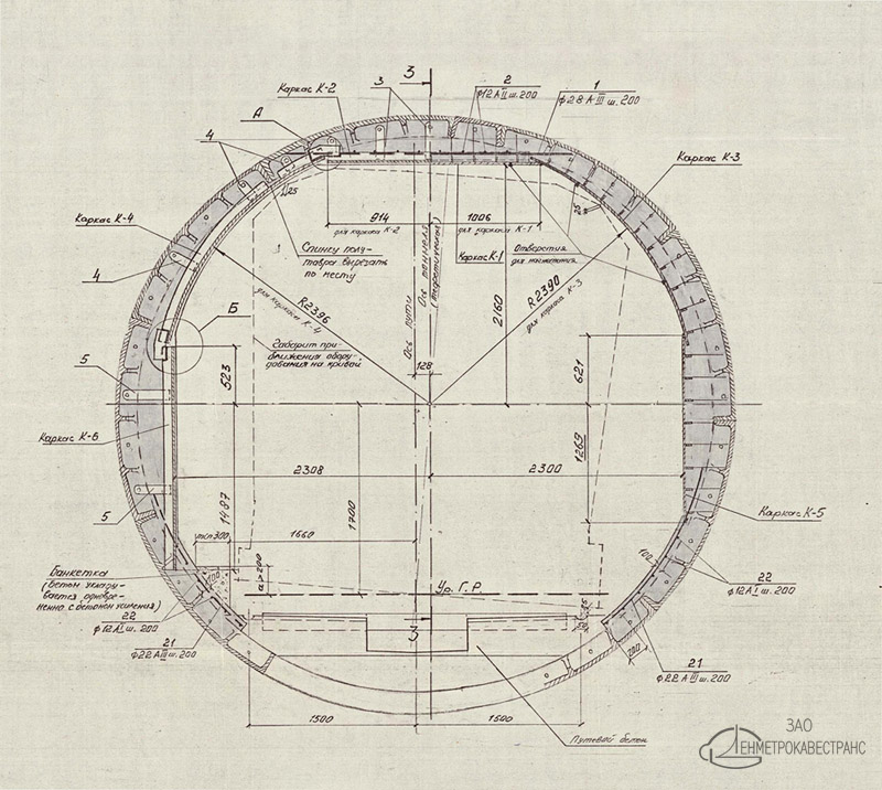 Сечение там самое обычное. Такой трапецевидный тоннель преобладает на перегоне Парнас-Проспект Просвещения, примерно 2/3 перегона. На перегоне Девяткино-гражданский проспект по большей части превуалируют обычные блоки(около метров 900), чугунные тюбинги(более километра), прямоугольные панели(более 200 метров), участок между последними и предпоследними как раз-таки и образует данный трапецевидный тоннель(чуть более 100 метров и только по Iму пути). Называют его тоннелем, оснащённым металлической рубашкой. Так что по мне интрига сильно преувеличена. Сооружали перегон скорее всего в кессоне в основном.
