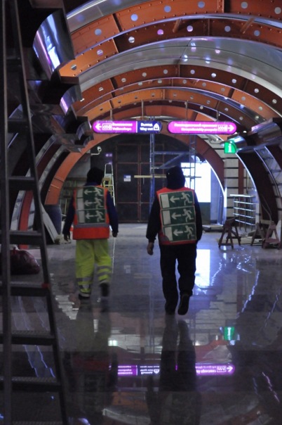 Я пока что от комментария насчёт вида путевой стены воздержусь до того, как облицуют потолок и включат освещение станции.