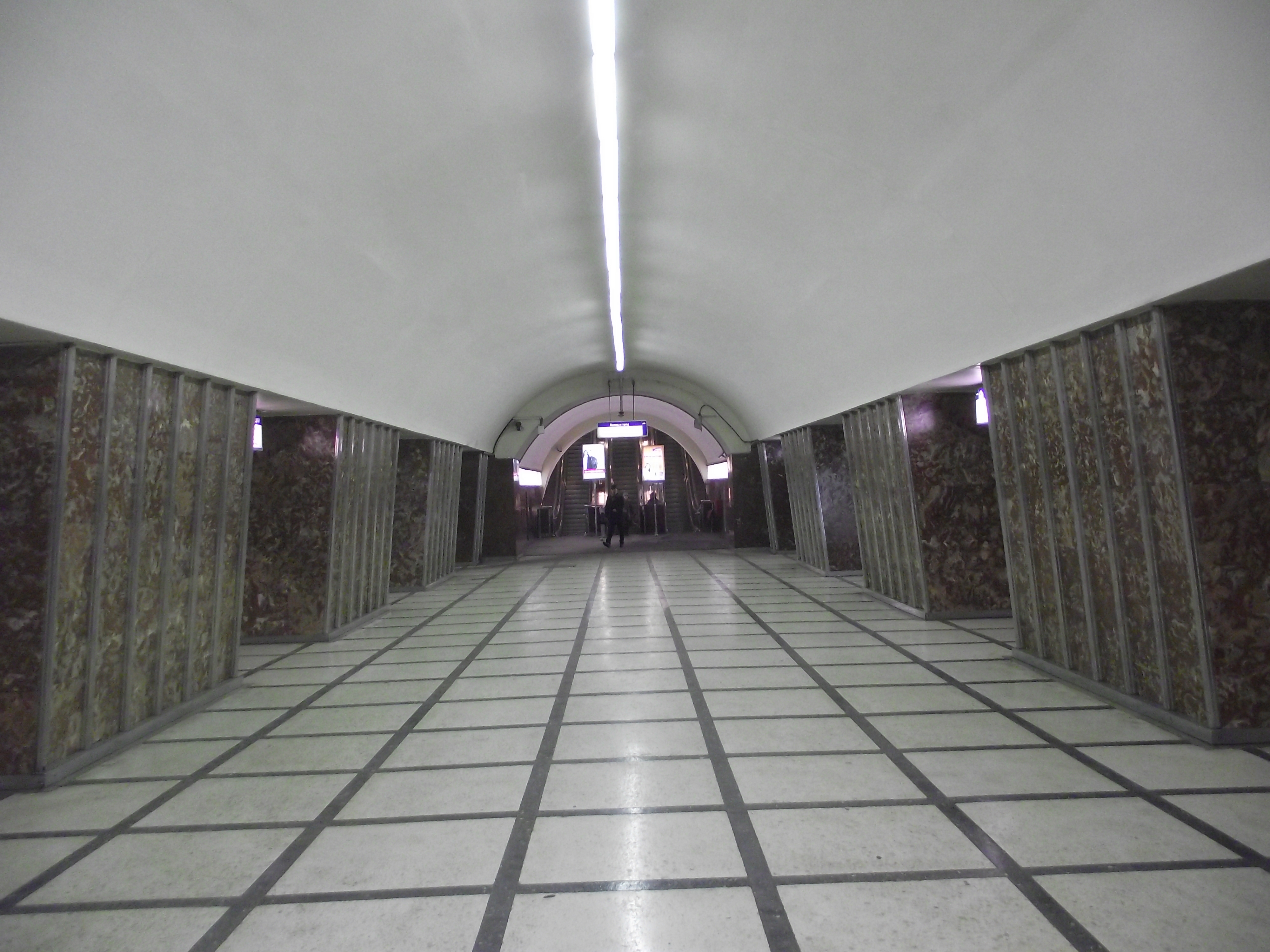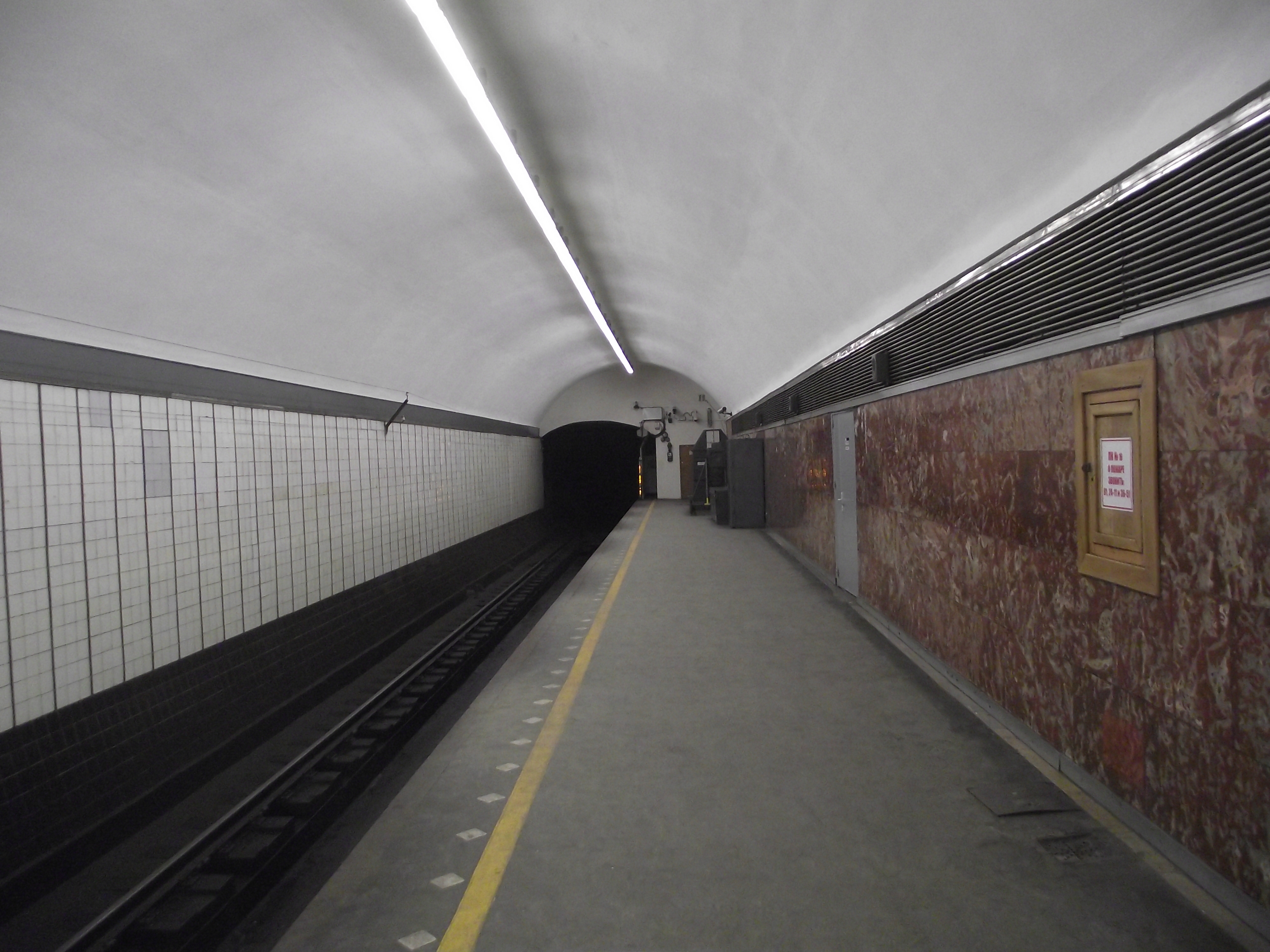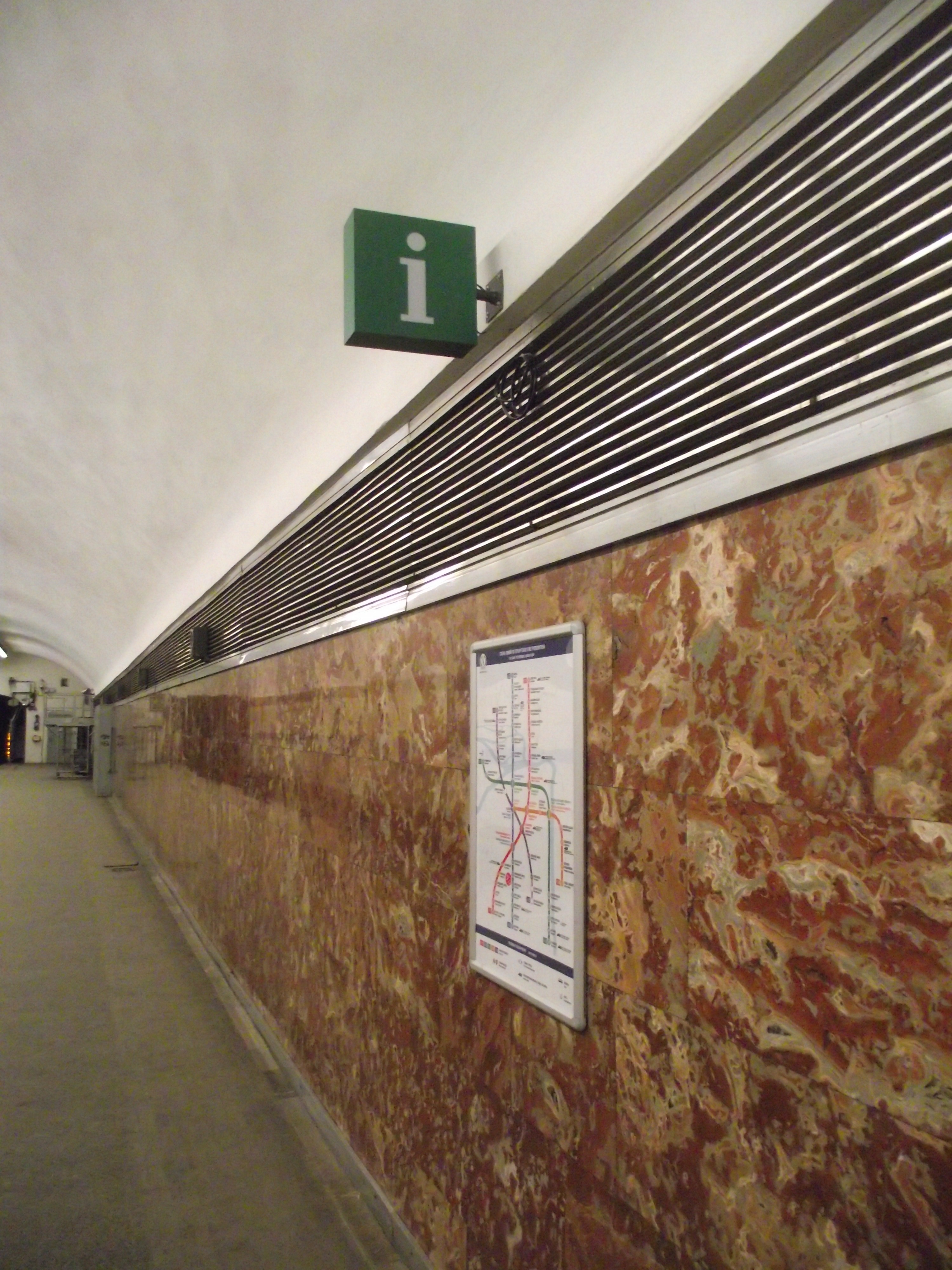 Самое интересное кафельное решение стены было у Пионерской, вот о чем надо жалеть, здесь же просто два вида плитки, так что при реконструкции скорей всего будут те же два вида, но уже в керамограните. Посмотрев на фотку с полосой, подумал что сама по себе полоса там в общем-то и не лишняя