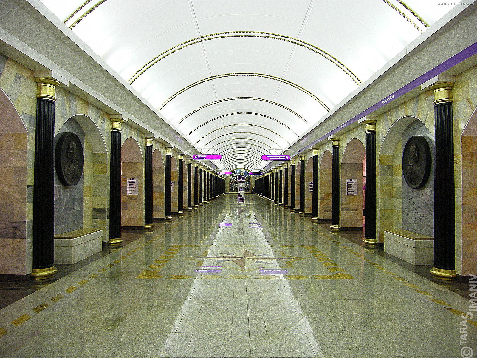 По мне так НИП на Адмиралтейской смотрится достаточно человечно. Уж что-что, а сосиски в ЦЗ всё же присобачили к колоннам, а не подвесили под свод. Но это касается сосисок. А вот кислотно-лиловая изолента на сером мраморе меня огорчает. На других станциях она хотя бы тёмно-фиолетовая. Ну, хорошо хоть в ЦЗ под карнизами не приклеили...
