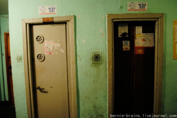 В моём бывшем доме - точке серии 1ЛГ-600А - стандартный советский лифт с распашной дверью с двумя круглыми перфорированными окошками (почти такая же красота, как фото 1) был заменён на новый лифт с, как я понимаю, полуавтоматической дверью (примерно такой, как на фото 2). Любопытно, это какая-то из строительных норм предписывает непременно иметь в подобных домах два лифта разной конструкции, или это местный ЖСК выбирает сам?