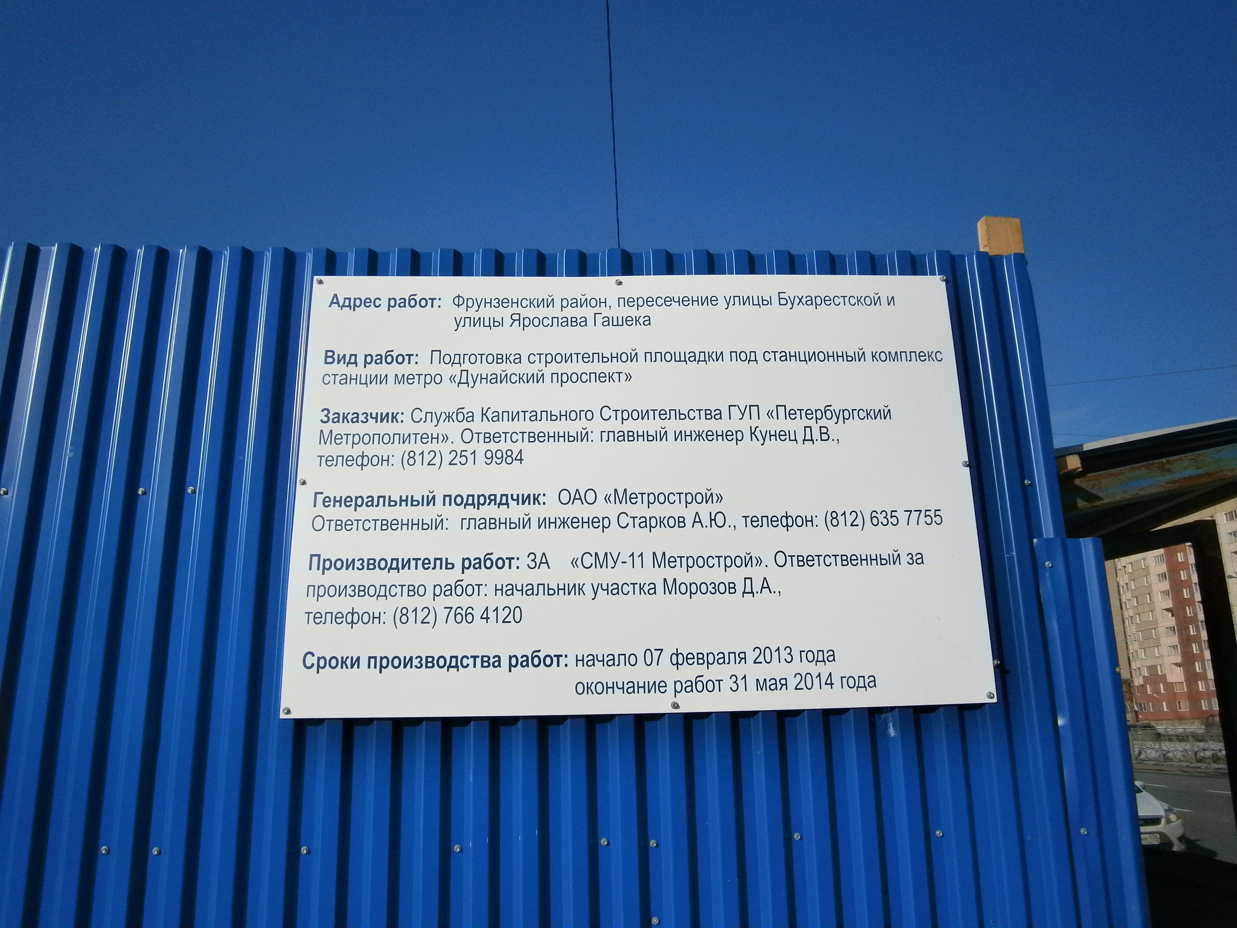 Я плохо понимаю текст информационного щита: что значит 31.05.2014 - это окончание подготовки площадки или это окончание чего-то другого? Что должно быть сделано к этому моменту?