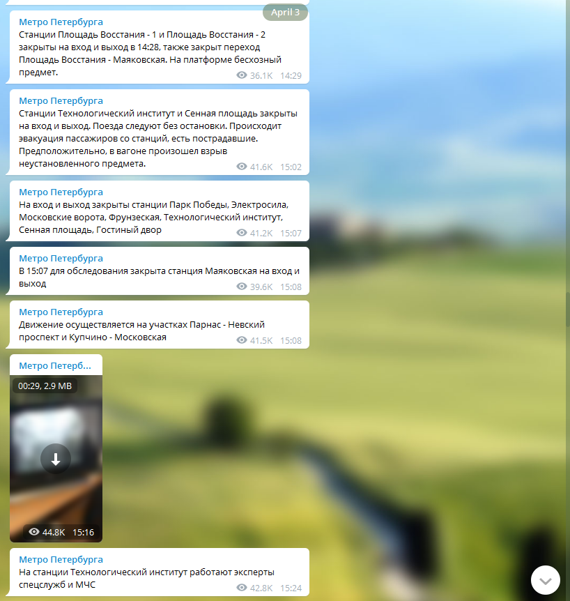 При этом, как утверждает Деловой Петербург, в группу ДТП и ЧС во вконтакте в 14.06 загружена фотка сумки на пл.Восстания, а опубликована в группе в 14.21, в 14.29 станцию закрыли. Автор фотографии утверждает, что фотка была сделана около 14.01.