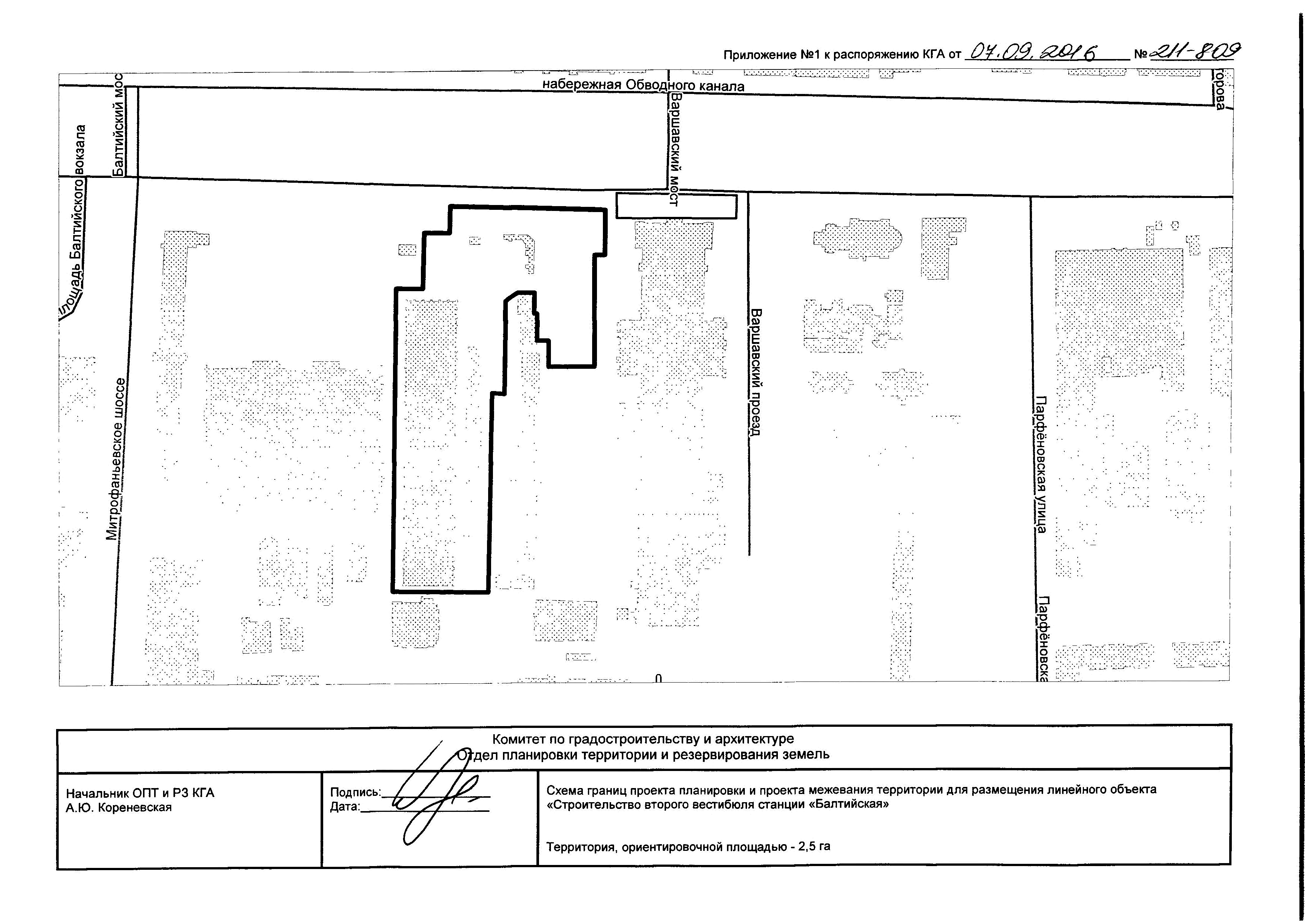 Схема границ проекта планировка и проекта межевания территории для размещения линейного объекта "Строительство второго вестибюля станции "Балтийская"