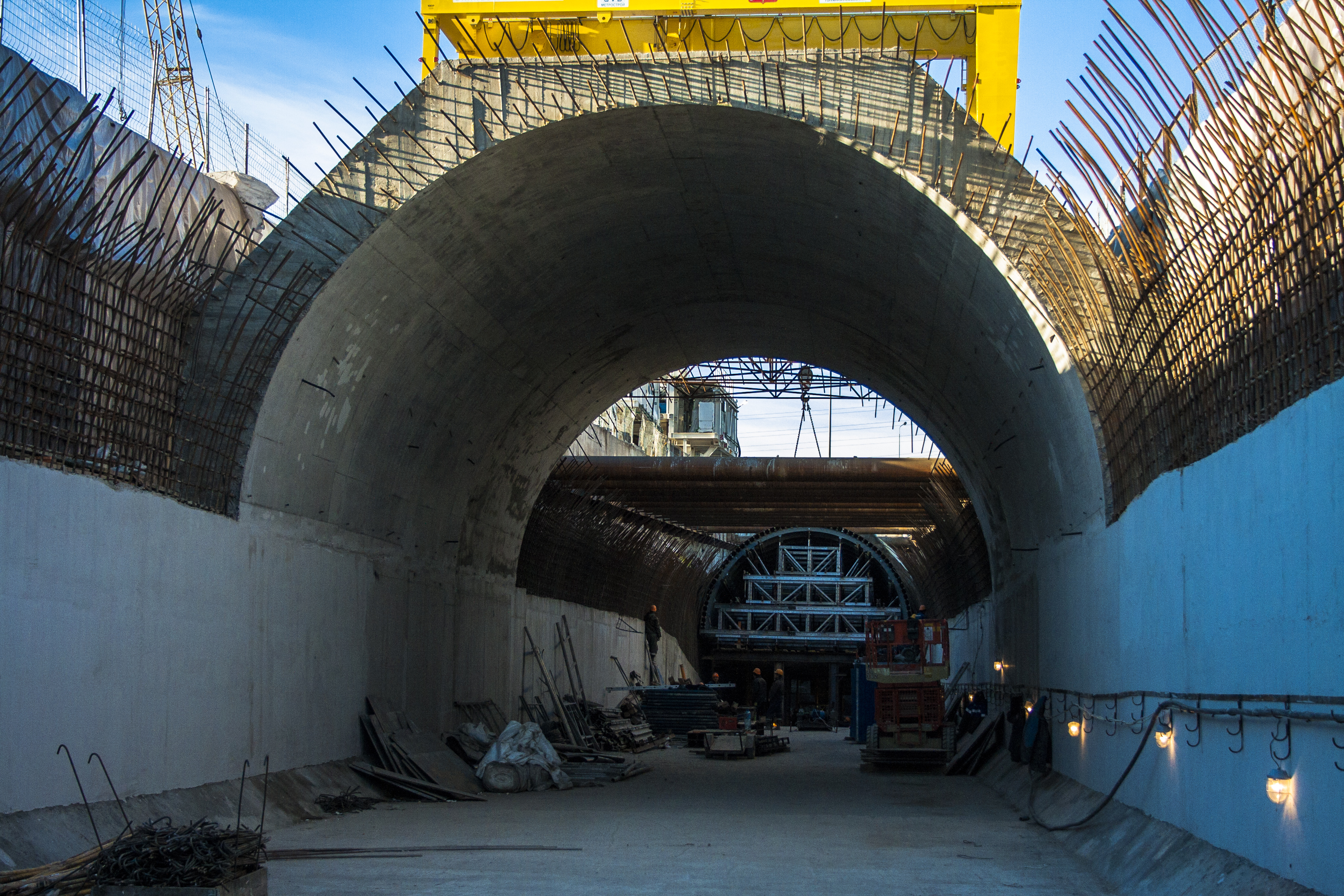 Активно ведется подготовка стартового котлована; при помощи двух передвижных опалубок ведется бетонирование свода портала между стартовым котлованом и будущей станцией; производится завозка и сборка элементов щита и дополнительного оборудования.