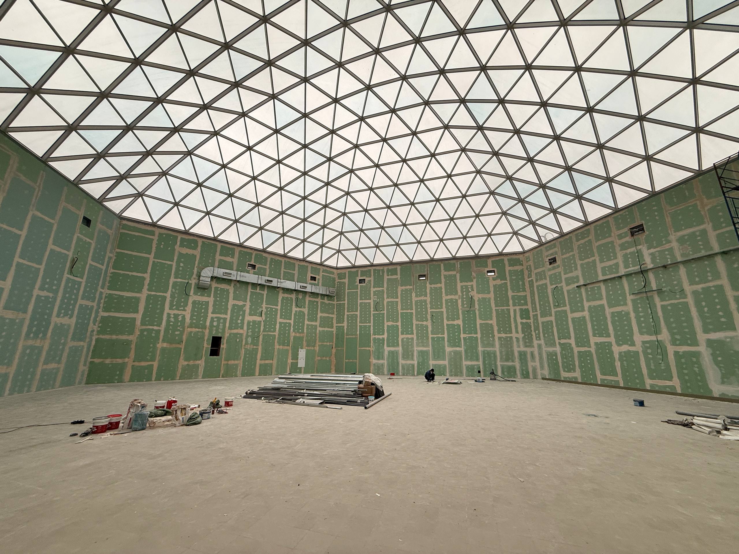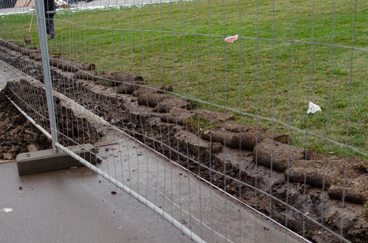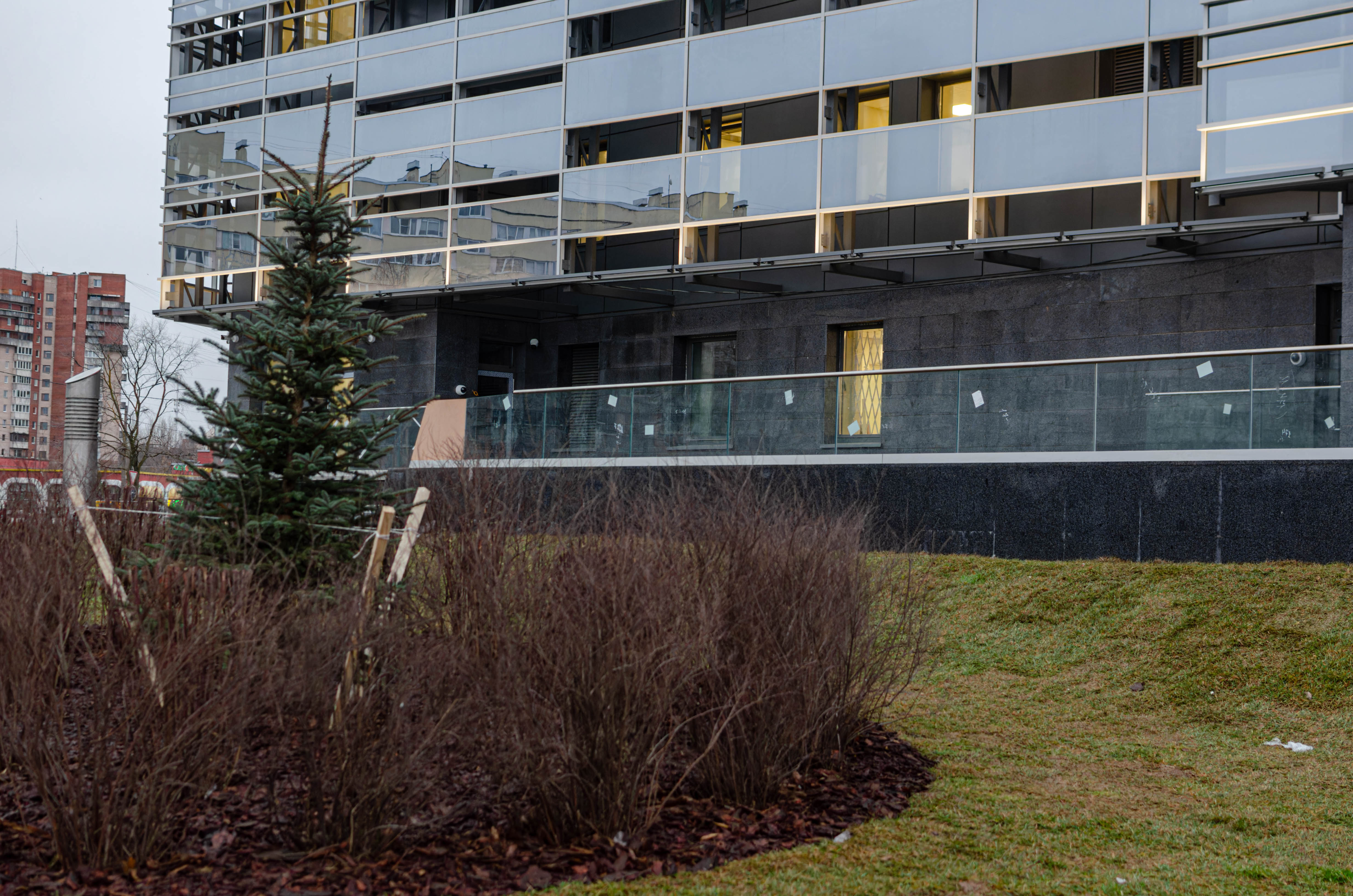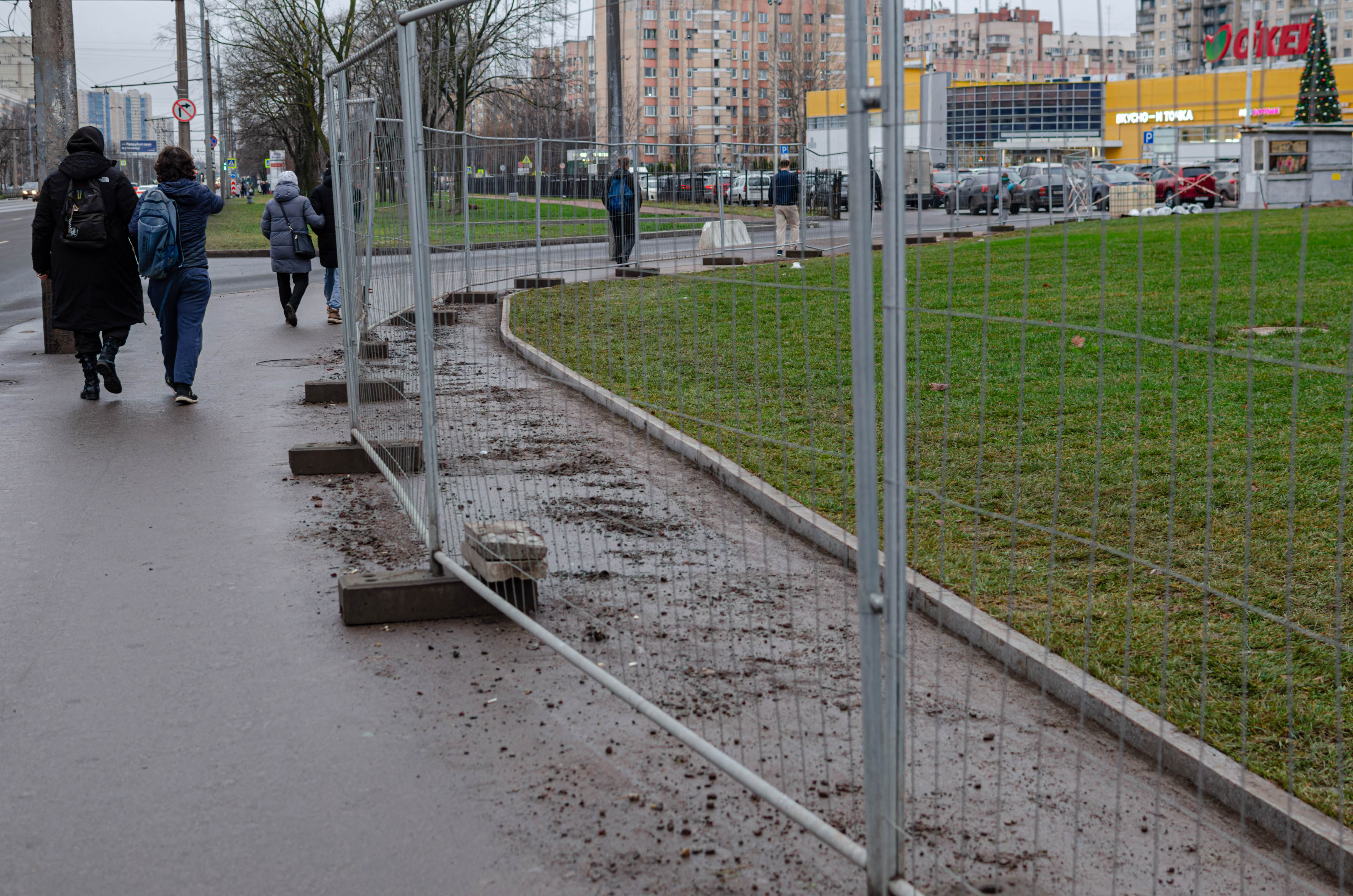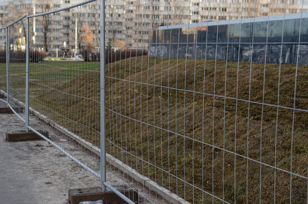 Завершают установку стеклянных ограждений, поставили гранитные поребрики, разделяющие газон и тротуар для предотвращения размыва, завезли каменные полусферы