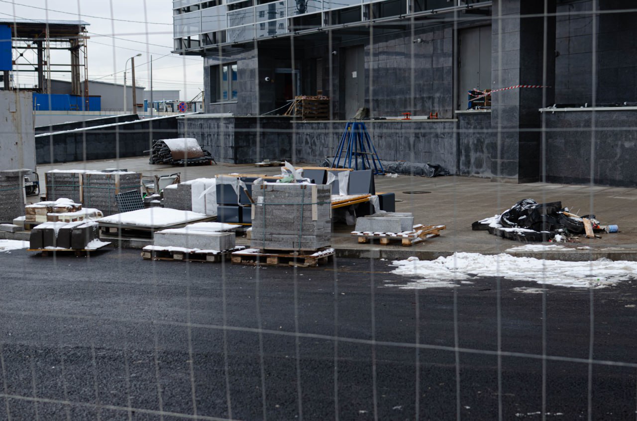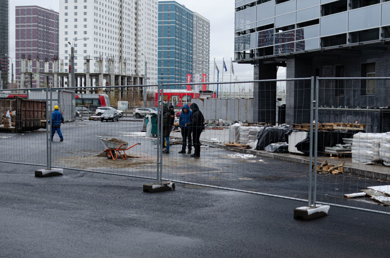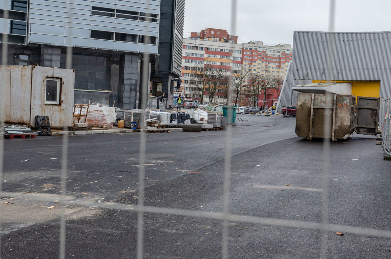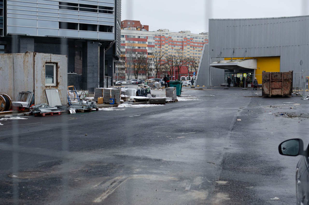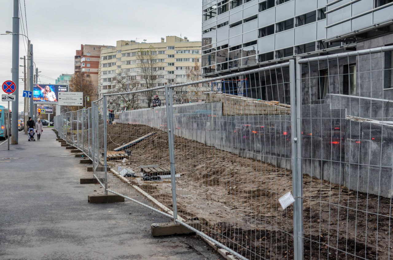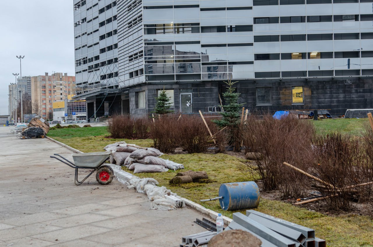 Актуальное состояние вестибюля станции Юго-западная. Там, где отсутствует поребрик между асфальтом и газоном, как вижу, начали выкапывать под него место. Ну и...всё