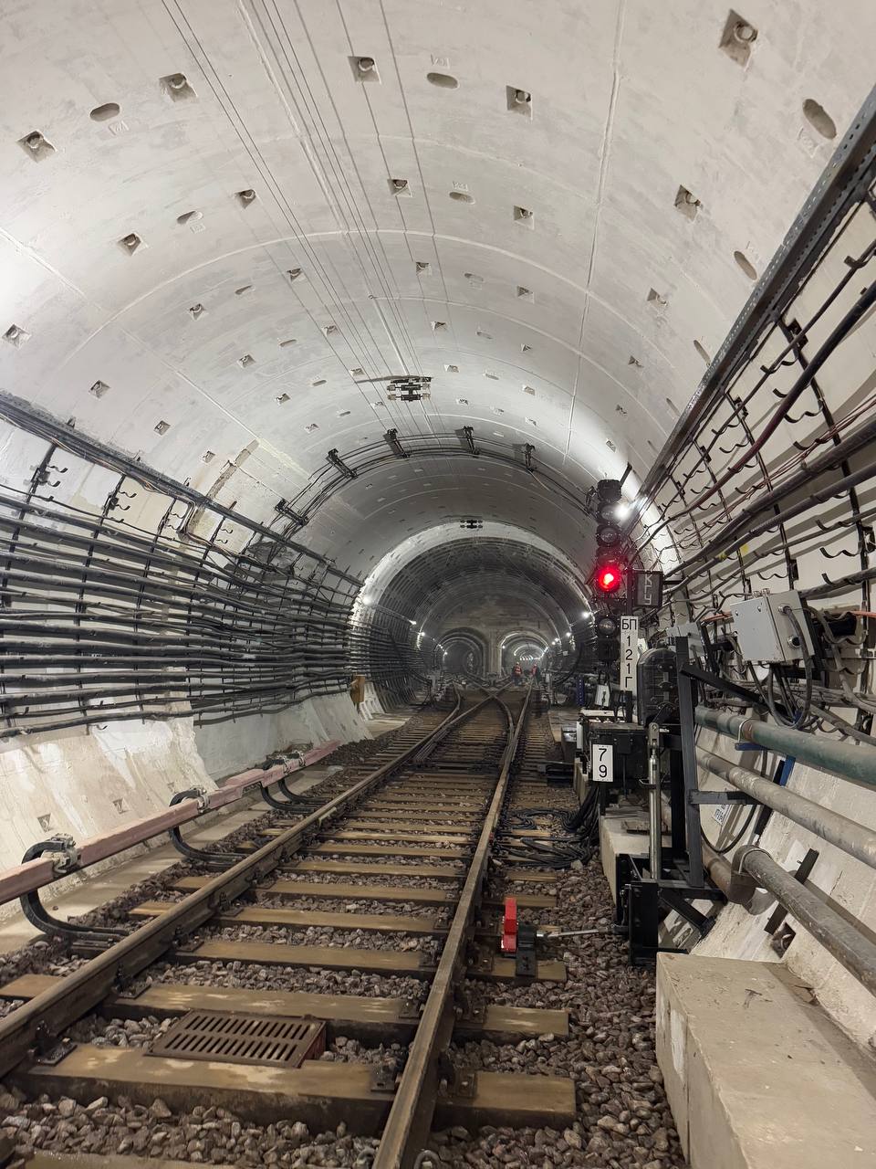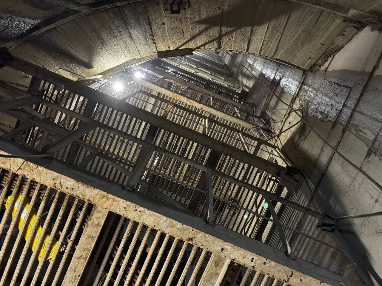 В стволе шахты возведена стена разделяющая её на две части, которые будут использоваться для вентиляции и эвакуации пассажиров. В эвакуационной части смонтирована лестница, по которой пассажиры смогут подняться с глубины ~ 60 метров.