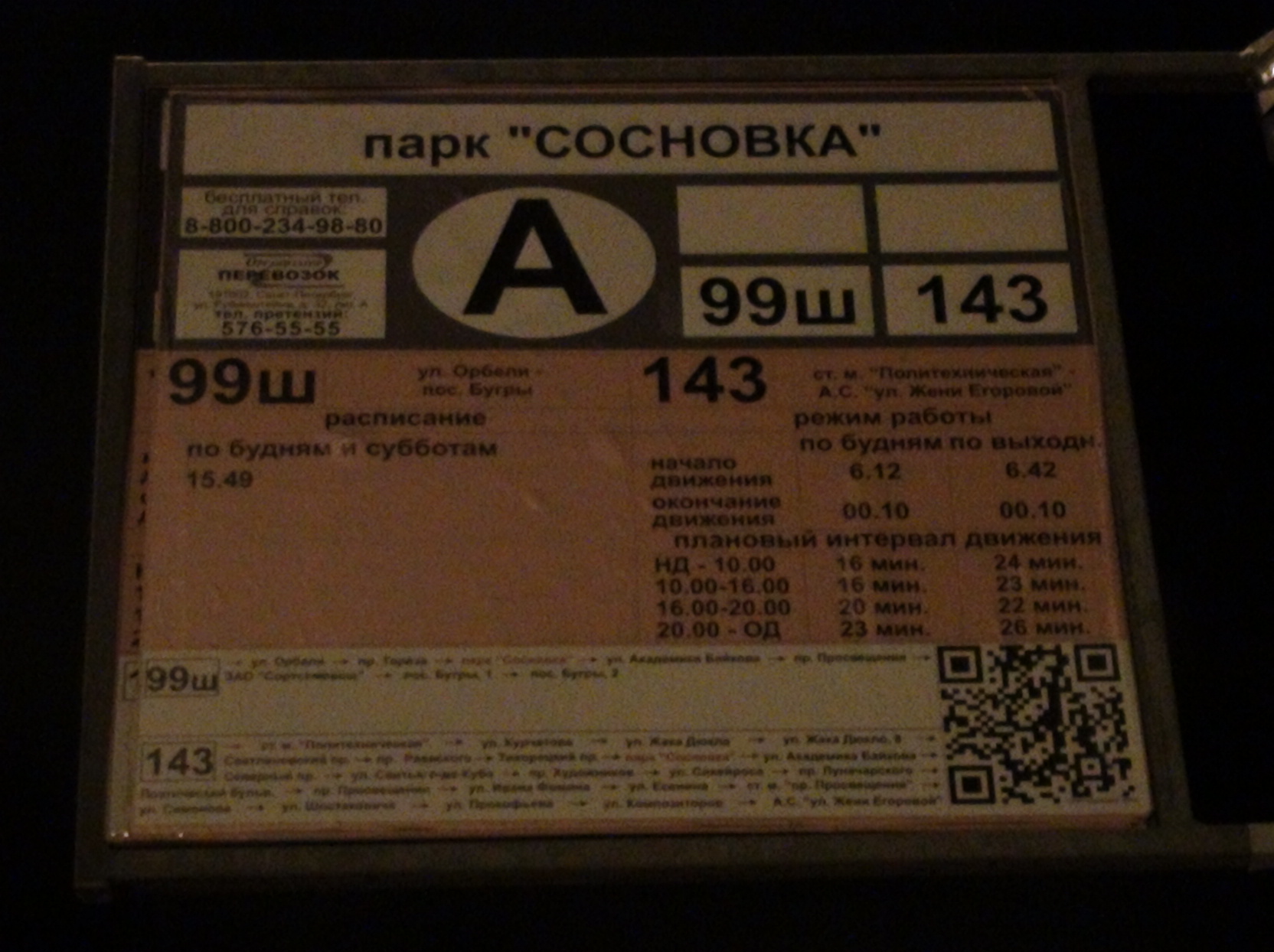 Никогда не обращал внимание на аншлаг на этой остановке. Но случайно обратив на неё внимание, обнаружил, что автобус 99ш только один раз в день ездит, по будням и субботам в 15.49 он на этой остановке. Это так, или я что-то неправильно понял?