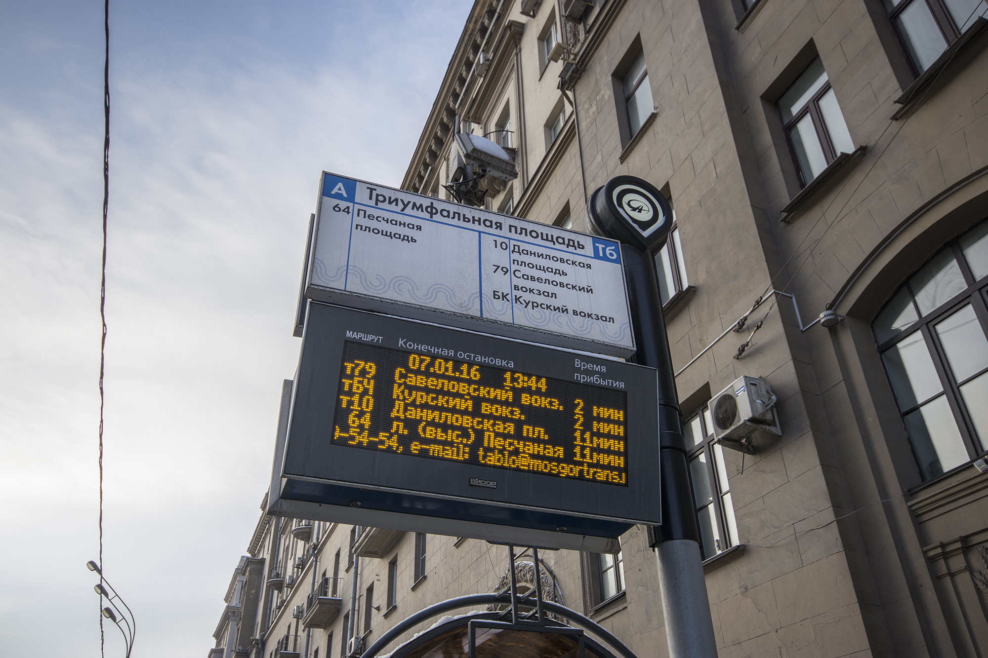 Не знаю, может, мне везло, но я сверял показания этого табло на Триумфальной площади с данными Яндекс-Транспорта, и всё, вроде, совпадало.