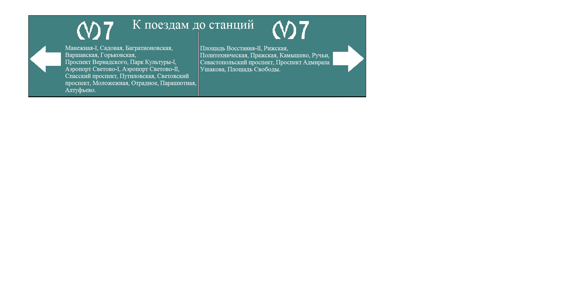 В метрополитенах, где применяется маршрутное движение, на станциях нет указателя конечной.