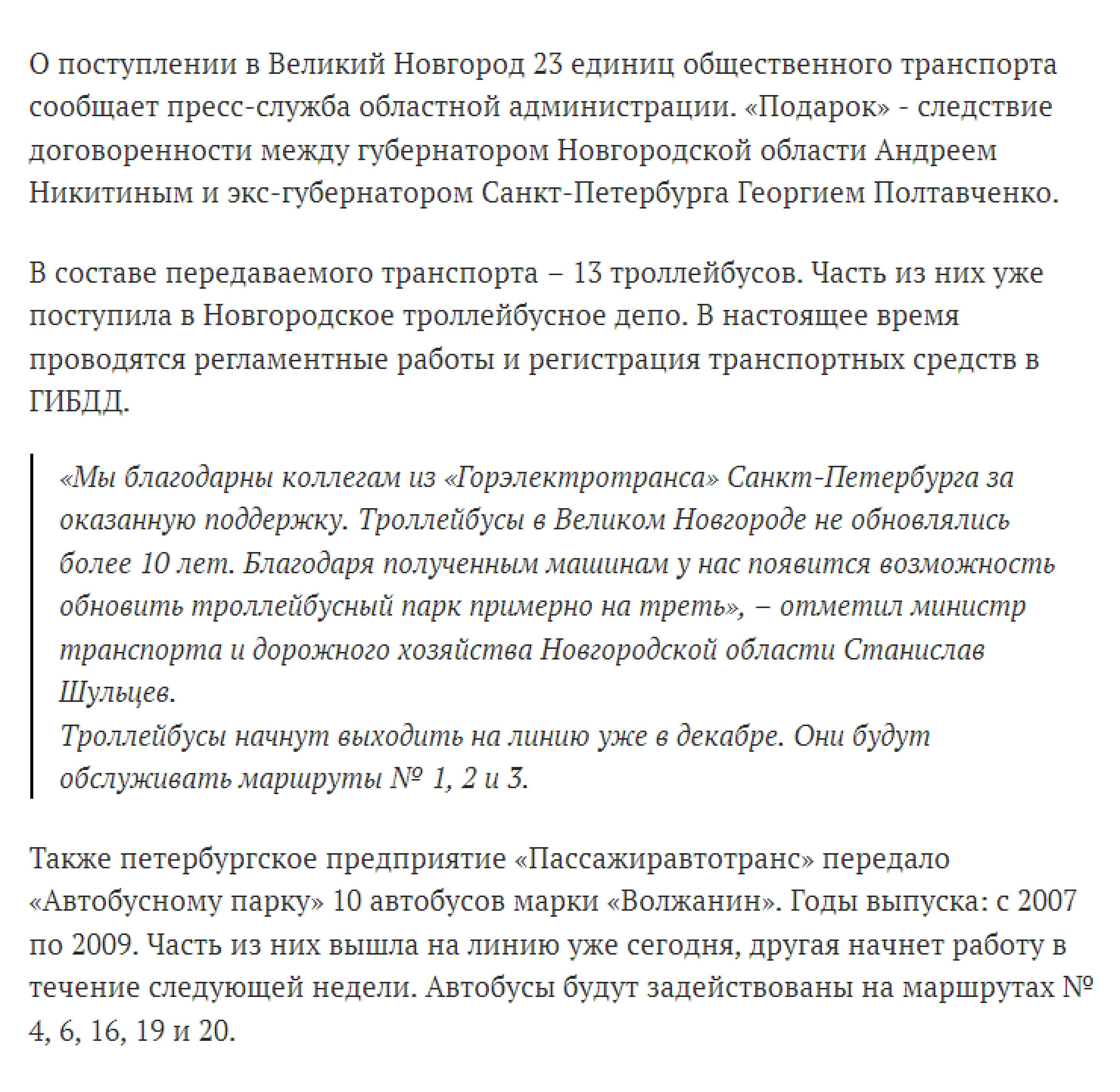 В Великий Новгород передали 13 троллейбусов из СПб.