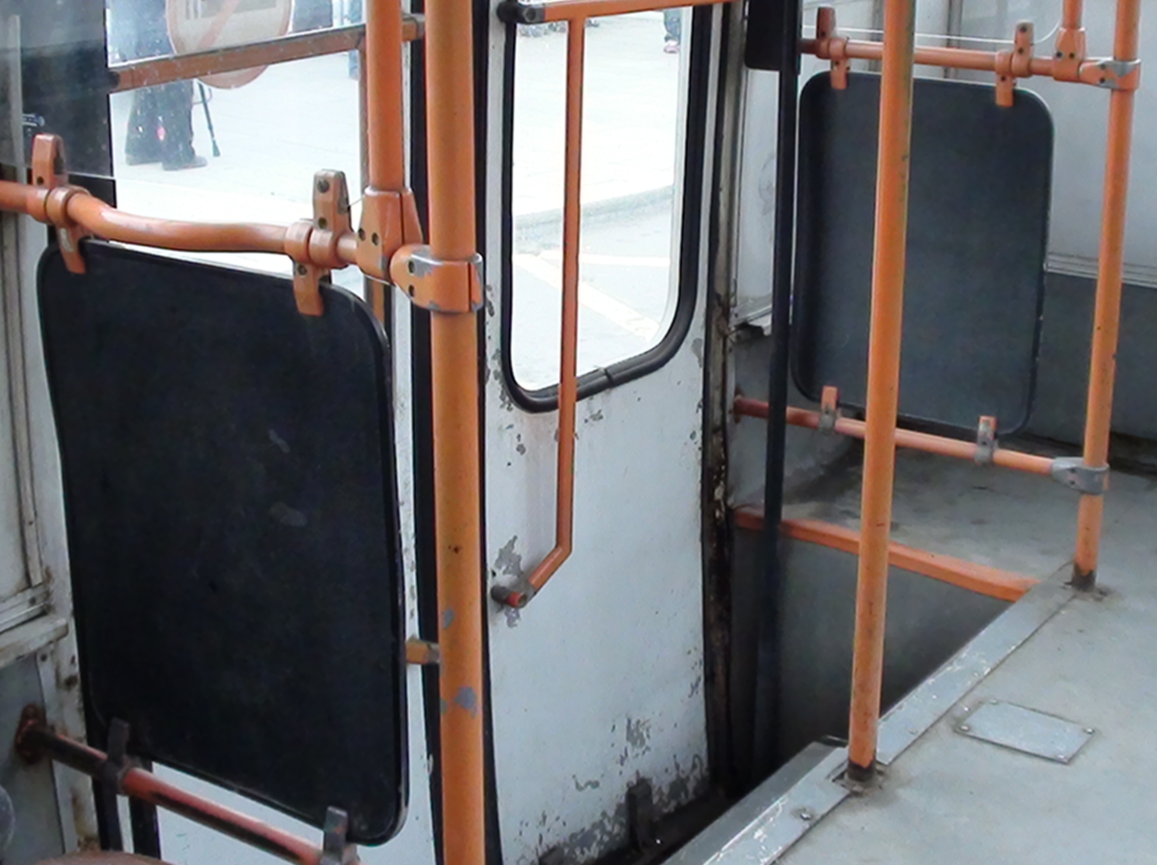 Кто не в курсе - в Екатеринбурге ездит последняя модель 200-го кузова. Усилен двигатель, повышена маневренность (не зря сзади сдвоенные колёса). А также, из-за того, что большой двигатель, двери смещены в сторону второй оси, в отличии от предыдущих вариантов. Ну и оранжевые поручни, щековины, стёкла - какбэ привет от 400-х кузовов. Которые изначально тоже, были оранжевого цвета. Как и тип сидений. Тоже, уже из 400-го кузова.