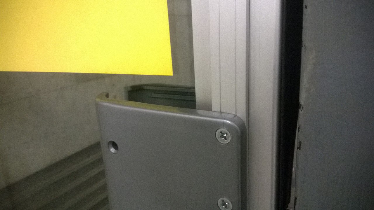 Пару дверей на выходе заменили(?), теперь идёт кант маленьким угловатым профилем, у меня аж пальцы зацепились. И выглядят они как ларёчные, собранные из попавшегося под руку.