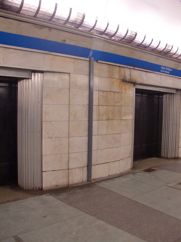 Признаться, спускаться в метро, когда ушел последний поезд, было несколько боязно. Тем более на станцию «Парк Победы». Ходят легенды, что автоматические двери отделяют тоннель от зала метро здесь не просто так. Якобы ее строители видели не то чертей, не то троглодитов, облюбовавших подземные просторы. И чтобы обезопасить пассажиров, возвели железные кордоны, так чтобы ни одна нечисть не вылезла из преисподней. Учитывая, что где-то над станцией в блокадные годы стоял крематорий, история выглядит правдоподобно.