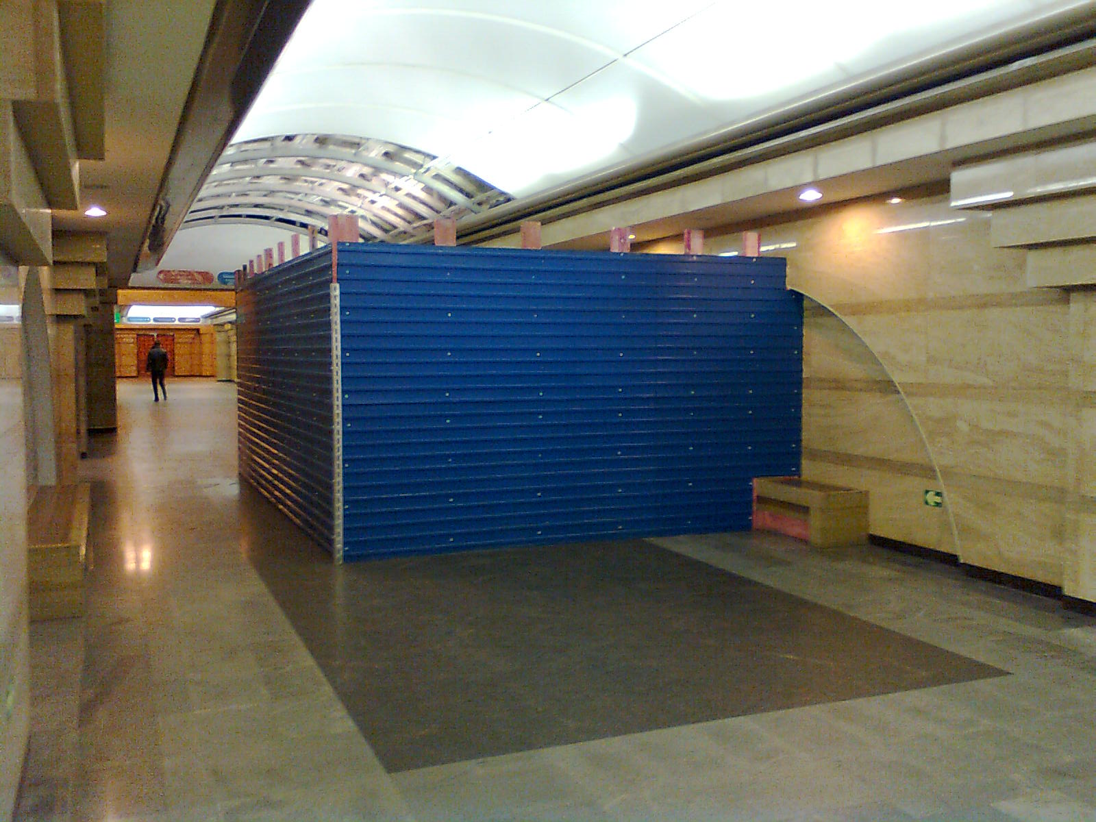 Синий заборчик уже нарисовался, около будущего выхода в город за первым проемом слева в сторону перехода Спасская - Сенная. Видно для хранения вской всячины. Но там отгорожена явно не треть.