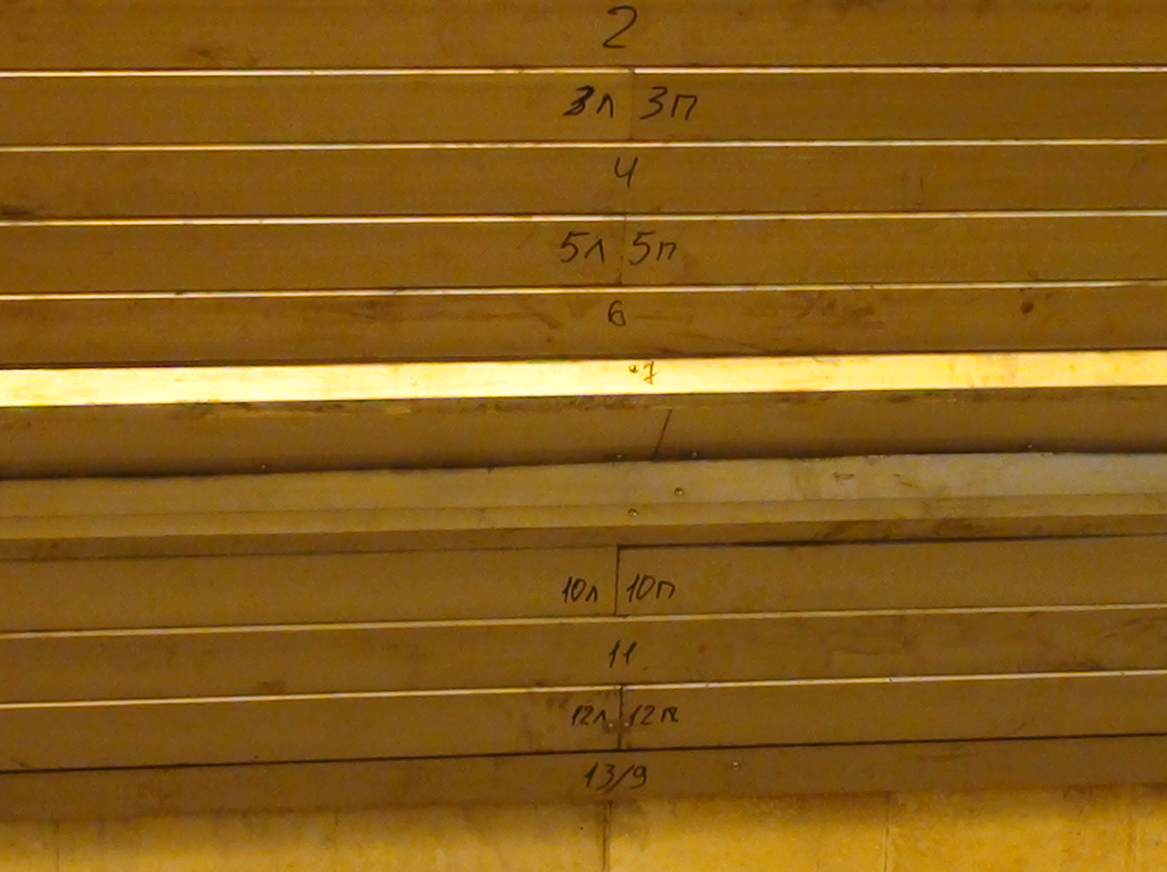 Вдоль путевой стены на Обухово положены металлические пластины. Видимо при ремонте их снимали. Когда снимали, подписывали их стороны, а при установке не стёрли. Не ужели тяжело оттереть? Ну ведь как в цеху каком-то...Метро всё-таки.