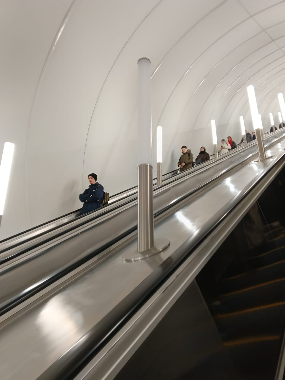 Сегодня в наклонном ходу в среднем ряду не работали сразу 5 светильников. Может и до сих пор не работают.