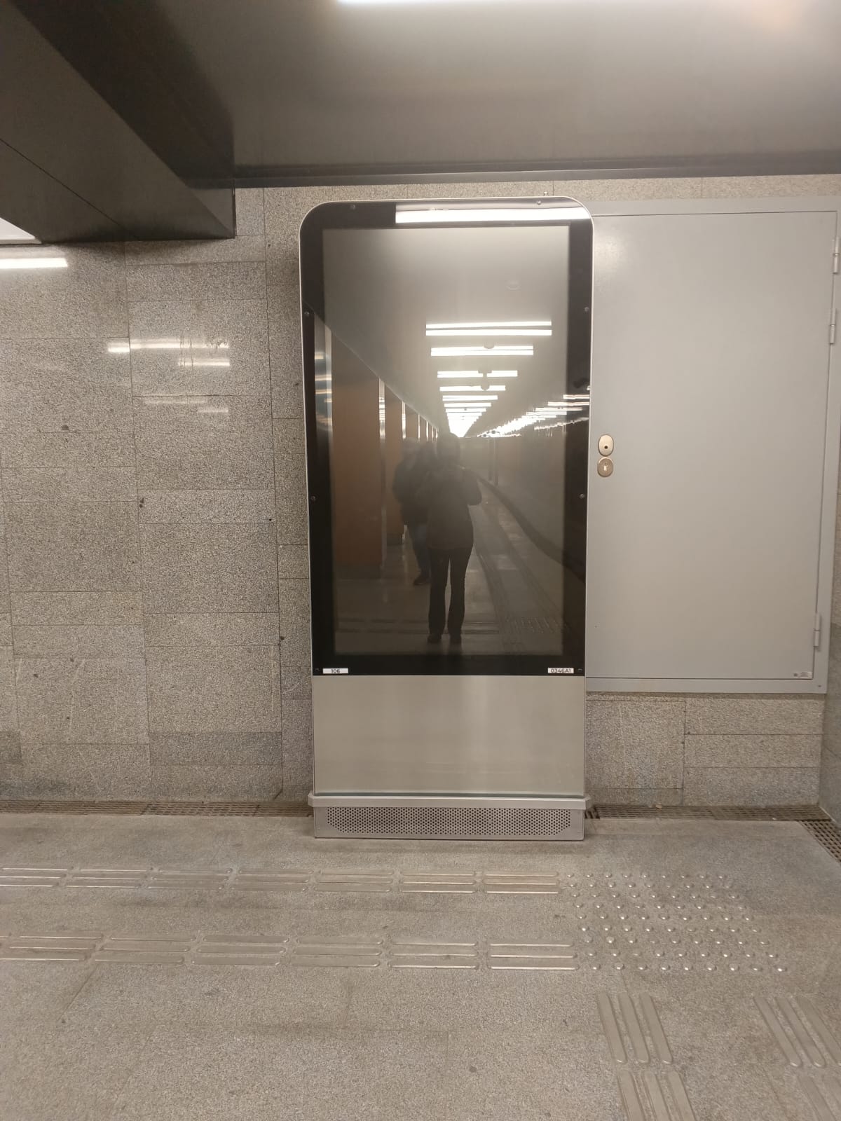Экран появился на днях в торце коридора, ведущего к выходу. Сегодня на нем уже рекламу гоняли.