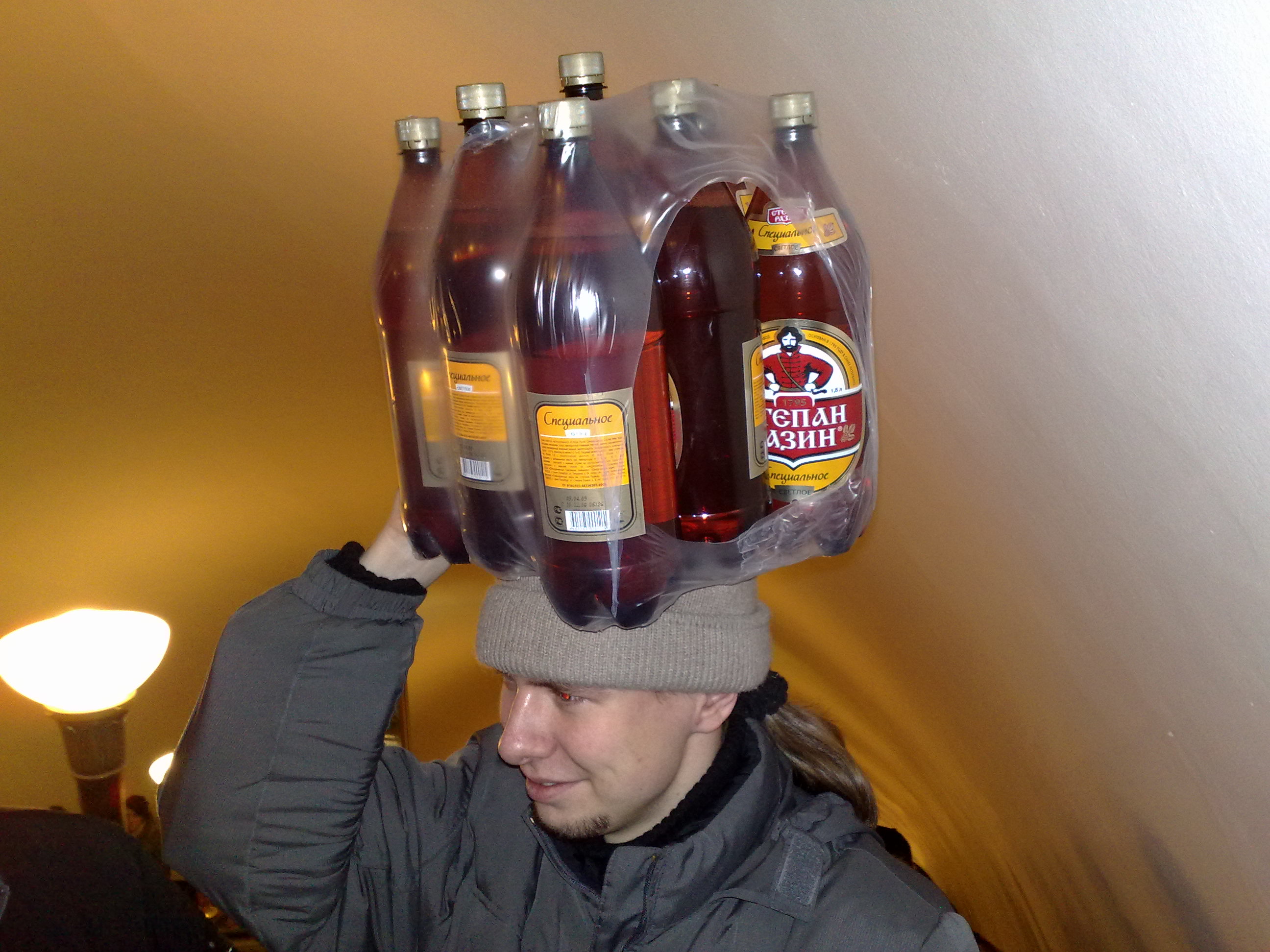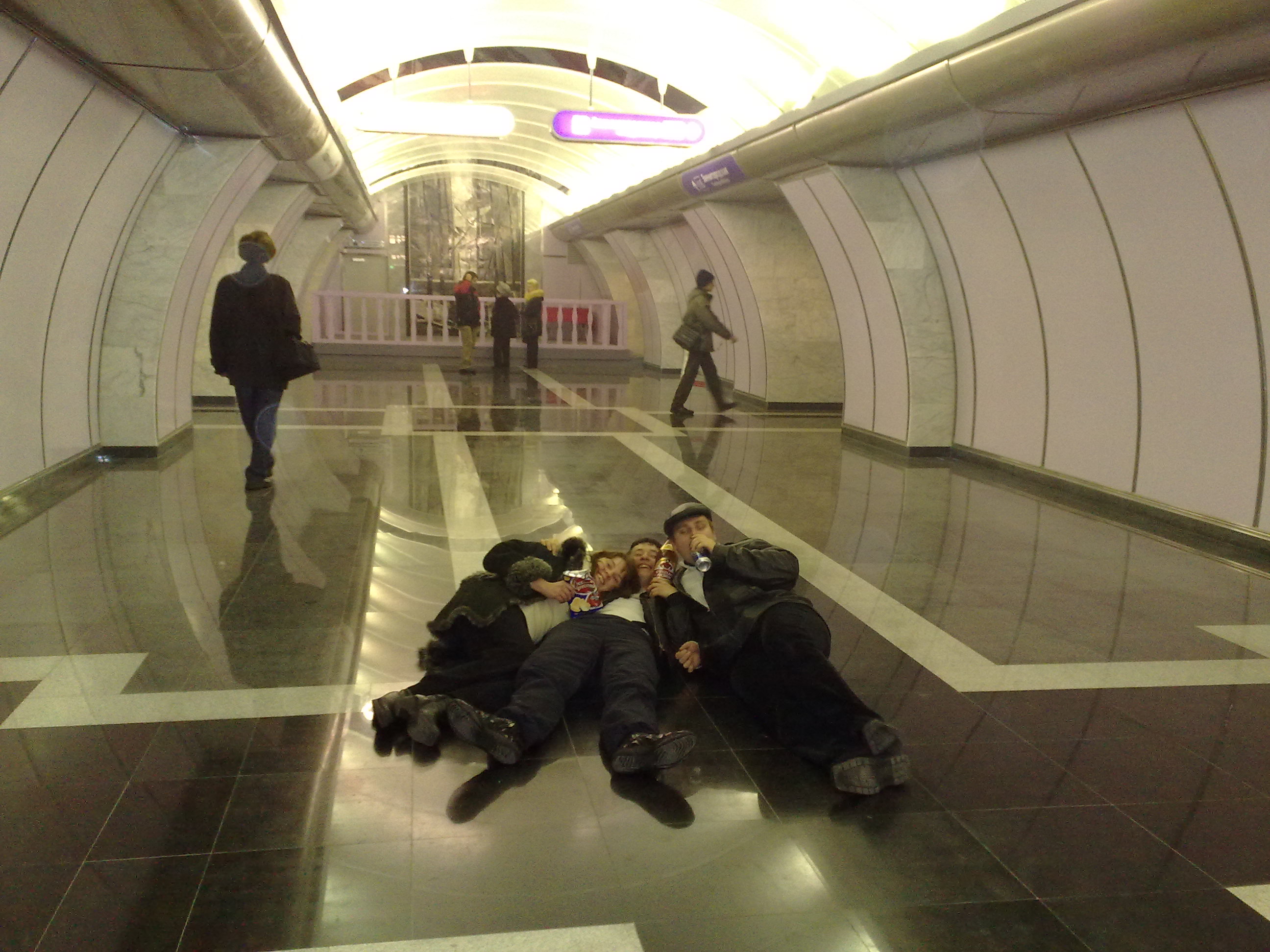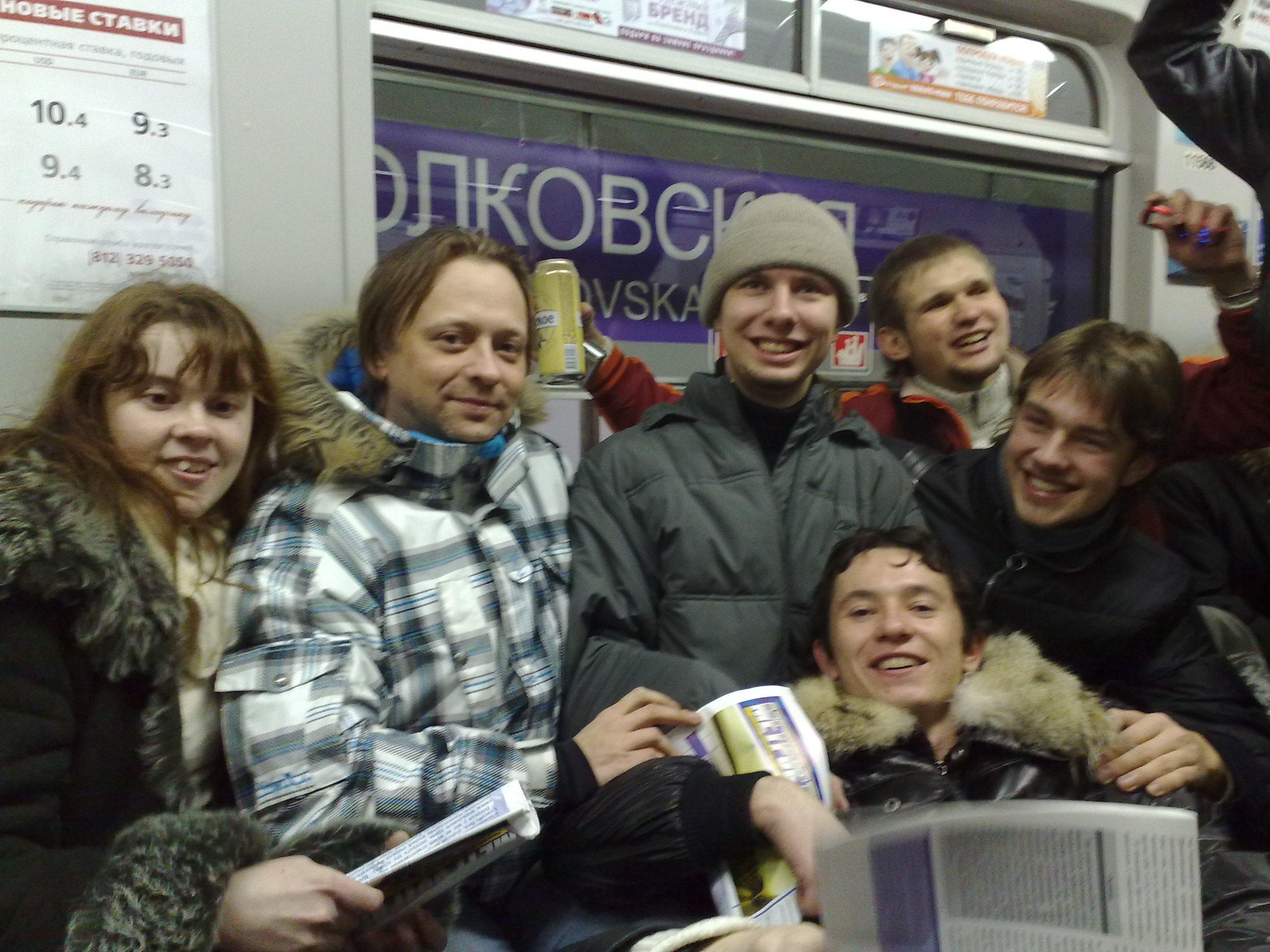А в целом все прошло более чем обалденно. Особо запомнилось как мы коньяк в наглую распивали в 25 трамвае. Так же ну оччень запомнилось, как при очередном спуске на Волковскую вдруг ступенек оказалось на одну больше, чем видел глаз, и мы с Алексом рухнули, раскидав по полу все бутылки с пивом. Народ в ужасе шарахался от нас, а у меня до сих пор плечо болит. На будущее нужно будет не понижать градус, а то пиво весьма серьезно заполировало коньяк