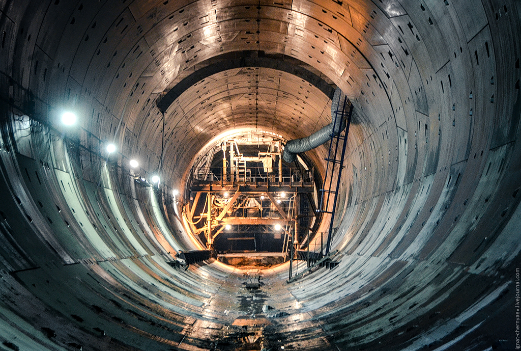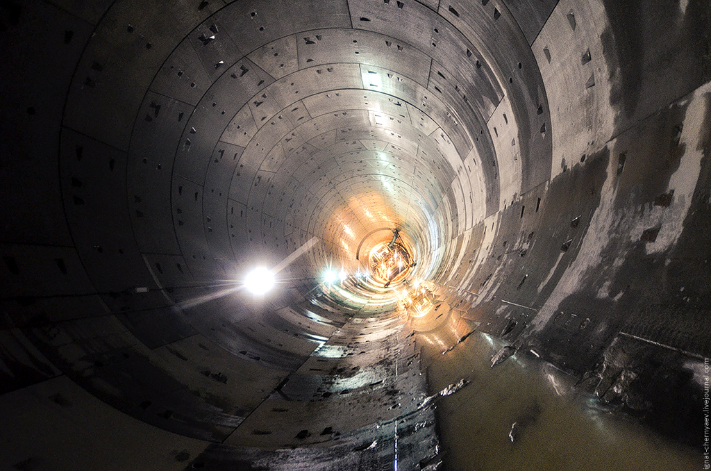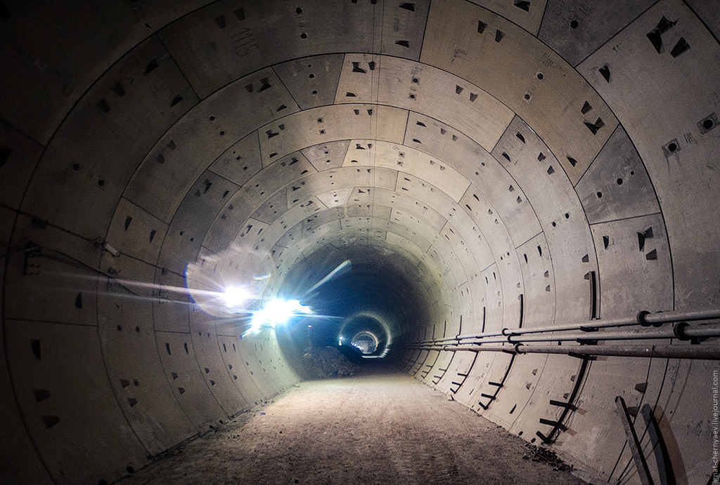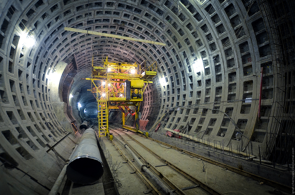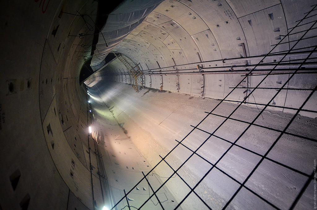 3. Правый перегонный тоннель между станцией и демонтажной камерой, где продолжается сооружение камер гермозатворов и обводных ходков: