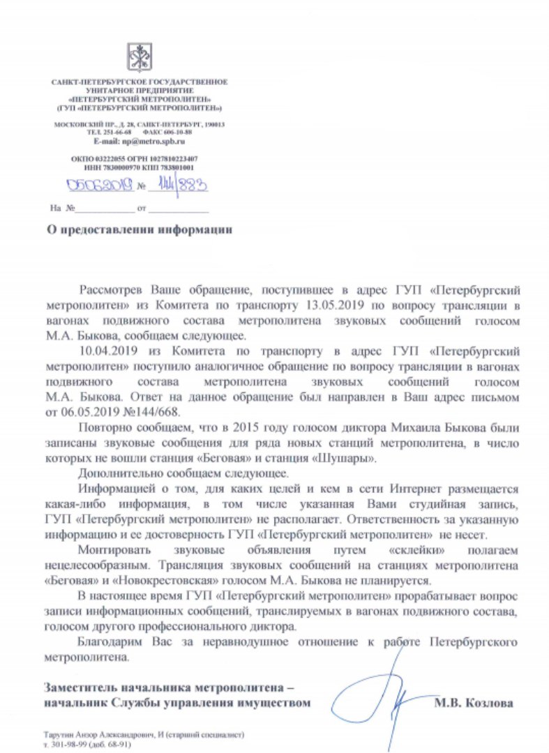 pay pass писал(а):Вот и пришёл повторный ответ от ГУП "ПМ".