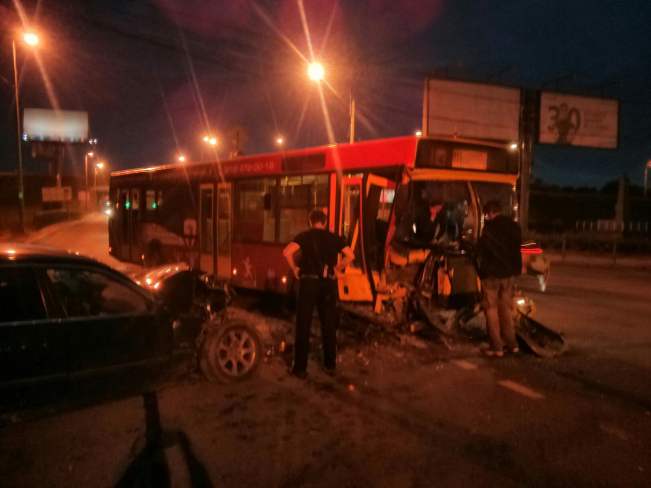 Сегодня на перекрестке Ак.Лебедева и Комсомола произошло мощное ДТП с автобусом 46 маршрута. Судя по фоткам 13 участников ДТП.