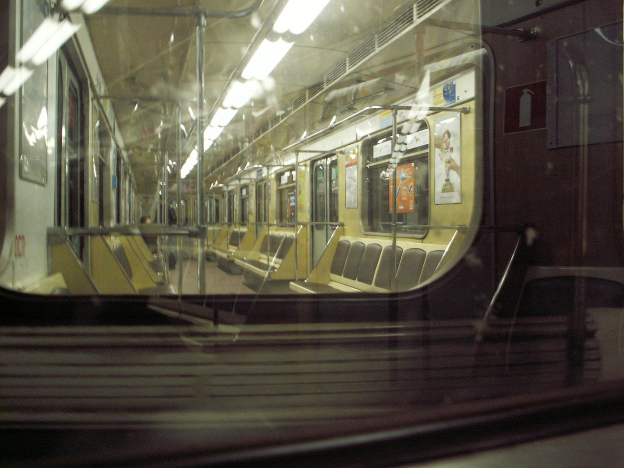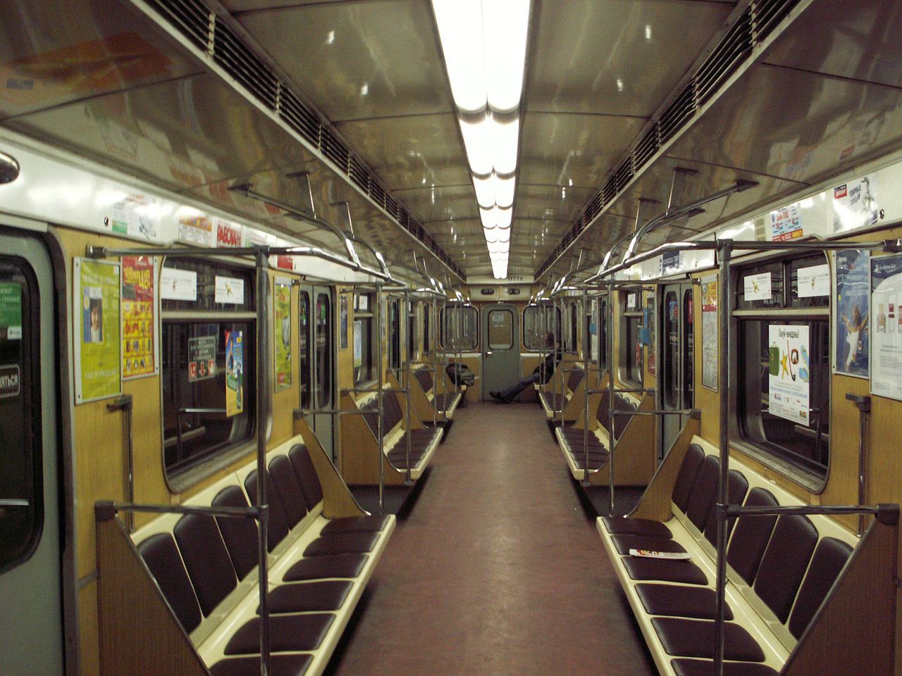 Вот ещё два вида (по пятой линии ходят составами 10212-11378-11383-11384-11385-10213, 10214-11386-11387-11388-11389-10215: ИМХО: самый красивый салон у 11384, 11387 был до того, как у них белый пластик появился. Правда, это уже не 81-717/81-714.