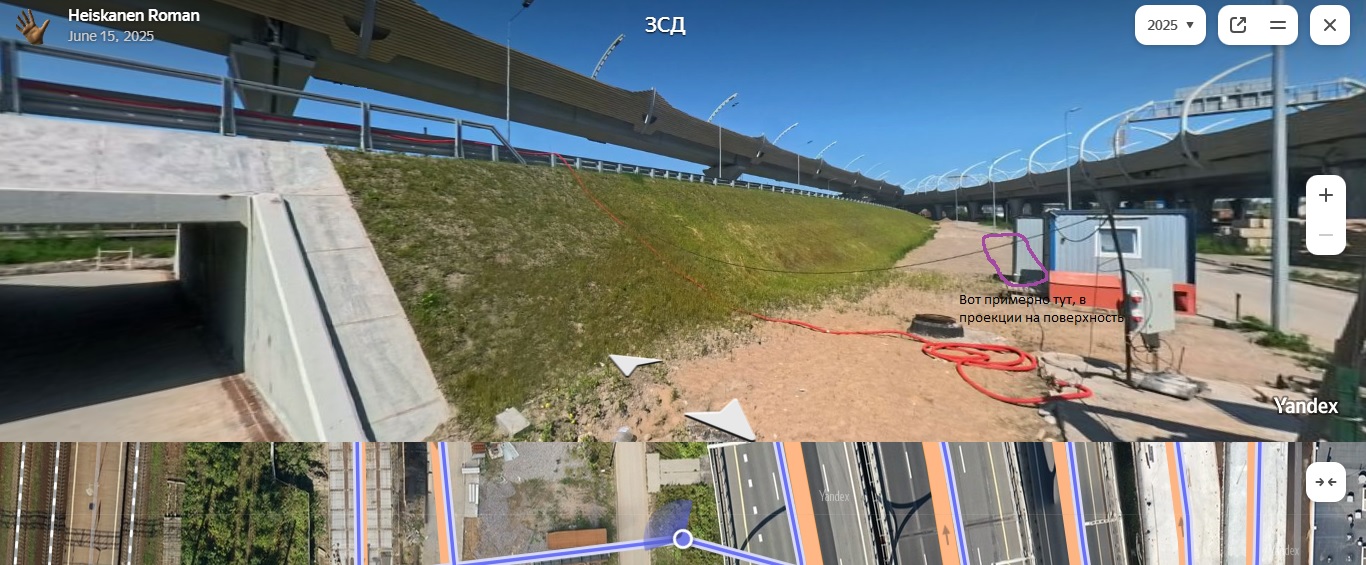 А вот вид с пешеходной тропы которая, в текущем виде, идёт по очень зaёбнoй траектории, но что ж поделаешь. Проекцию наклона на поверхность можно сделать примерно такую, техническая дорога на время строительства вестибюля рзбирается, и потом собирается заново.