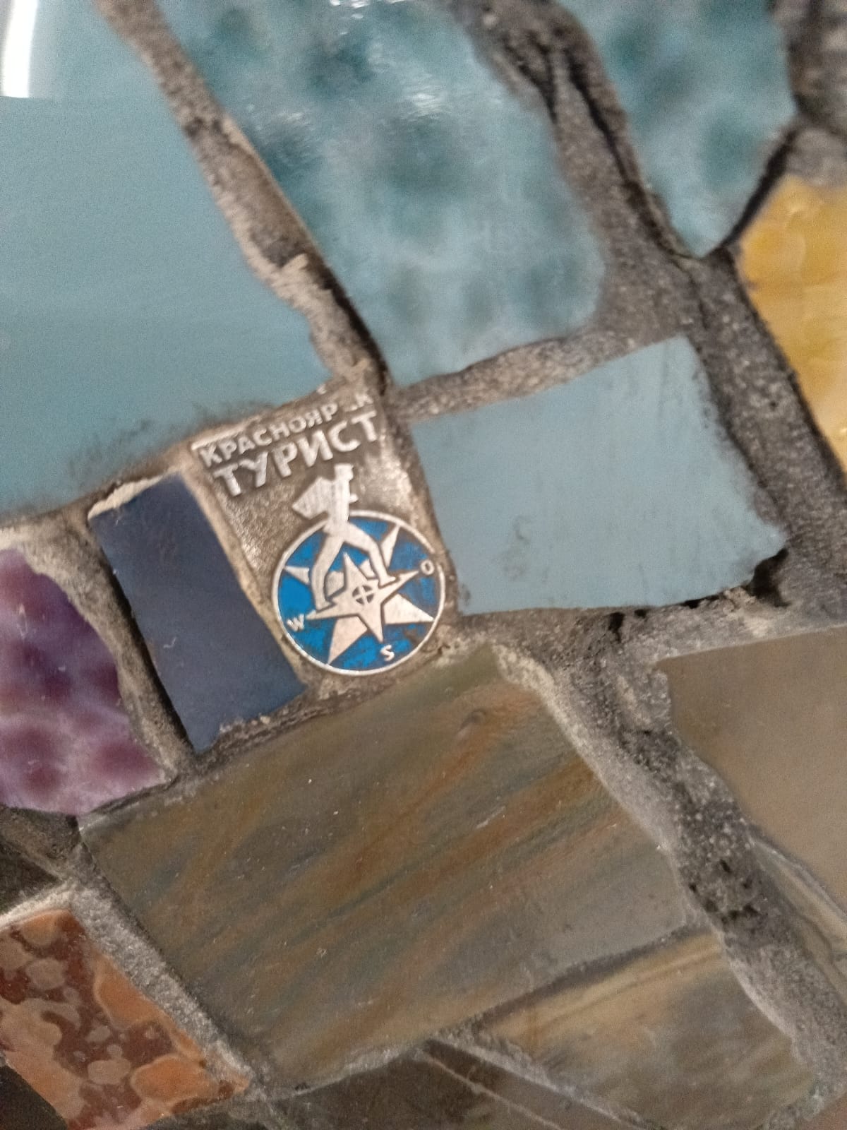 Возможно уже кто-то это показывал и я пропустила. На днях была на Горном с сыном и он заметил значки вмонтированные в панно. На фото далеко не все - некоторые довольно высоко, камерой с телефона не достать.