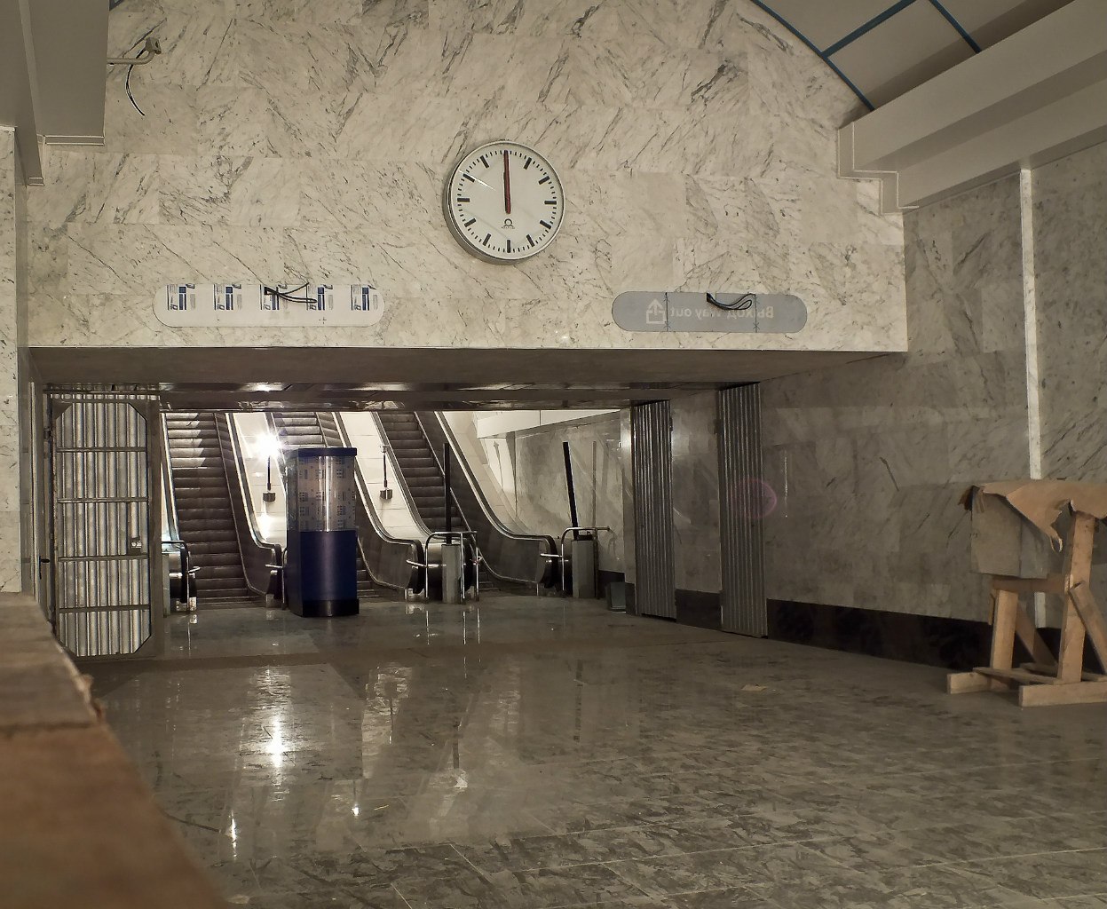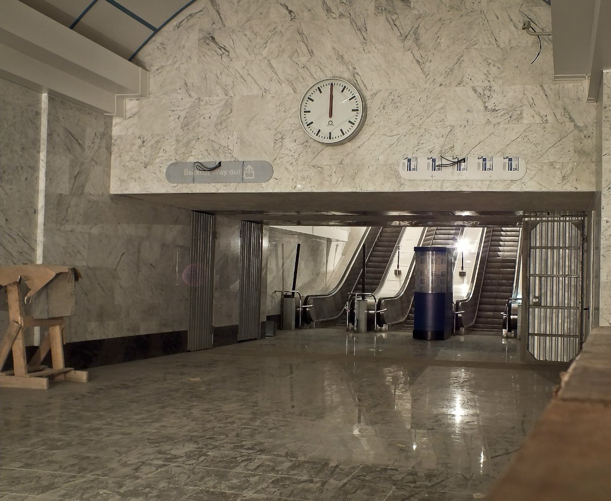 Нет, движение эскалаторов, будет левосторонним (английским) — это видно из положения касс в вестибюле (фото проскальзывали раньше в этой теме). Что же касается последней фотографии из предыдущего поста, то либо она сама зеркальная, либо таблички не так прицепили. Если откроете в полный размер то увидите, что на правой табличке написано «tuo yaW дохыВ». :)