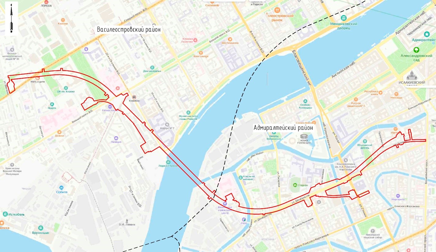 Обратил внимание, что, похоже, в ППТ попал отвод под второй выход с "Горного института" на Масляный канал.