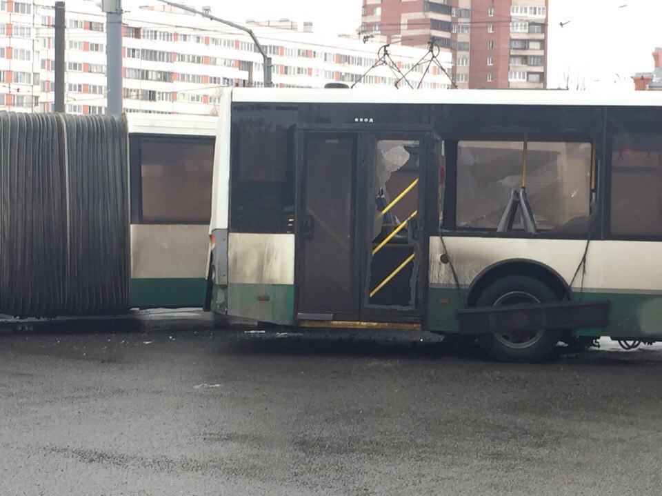 На перекрёстке проспектов Стачек и Трамвайного столкнулись два рейсовых автобуса — № 200 и 300. (Столкновение 5329 и 5250).