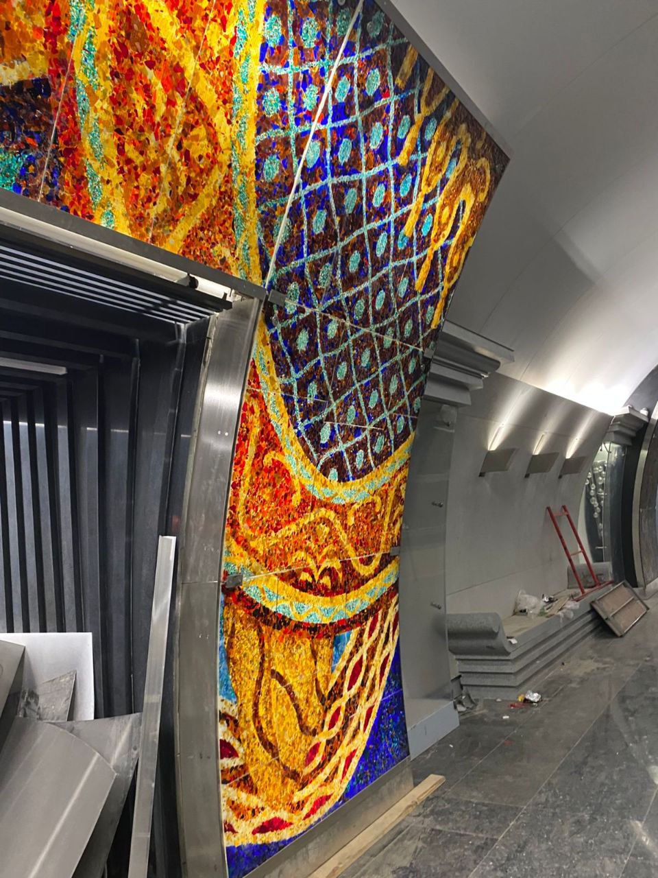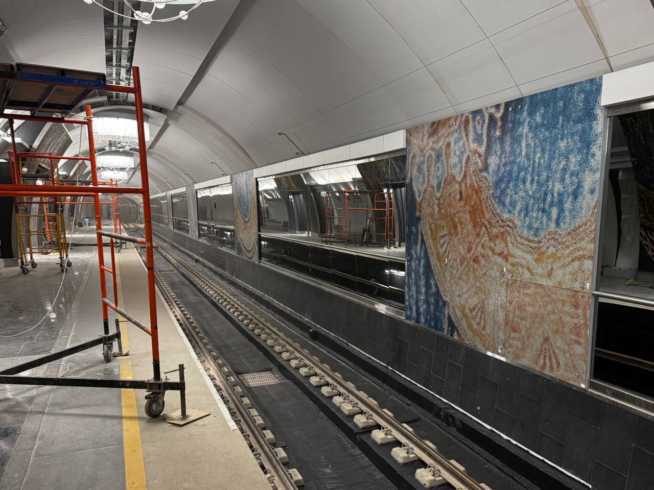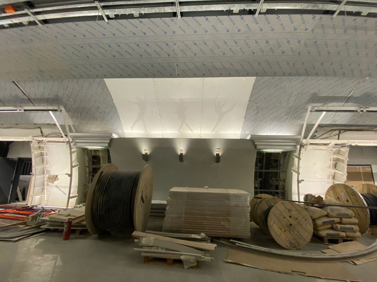 центральный зал по готовности по прежнему заметно отстаёт от боковых.