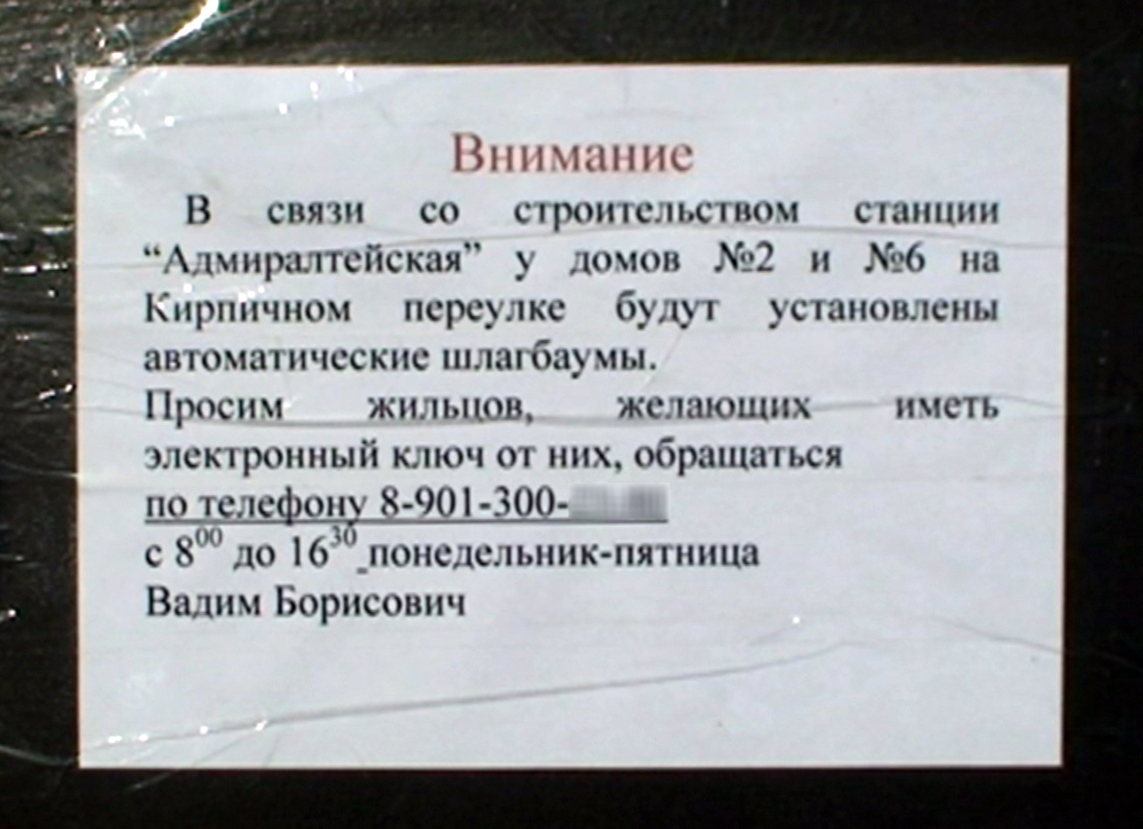 Строительство выхода станции метро "Адмиралтейская" едва не оказалось под угрозой срыва. Жители домов, соседствующих с демонтируемым зданием на углу Кирпичной и Малой Морской улиц, написали жалобу в Смольный. Строительные работы, якобы, привели к появлению трещин. Эксперты утверждают, что эти заявления не имеют ничего общего с реальной ситуацией.