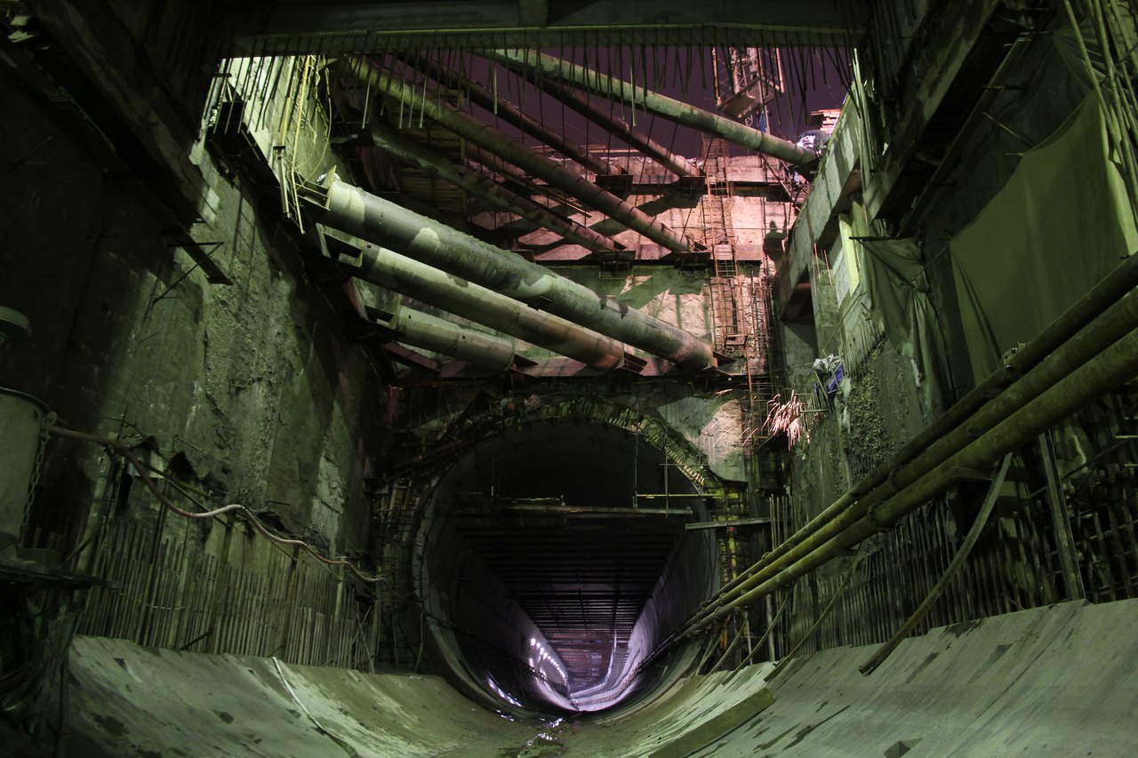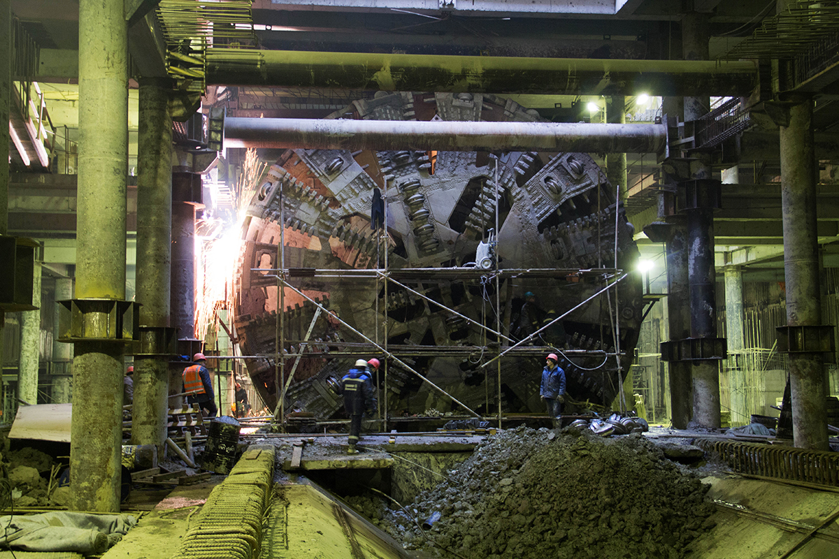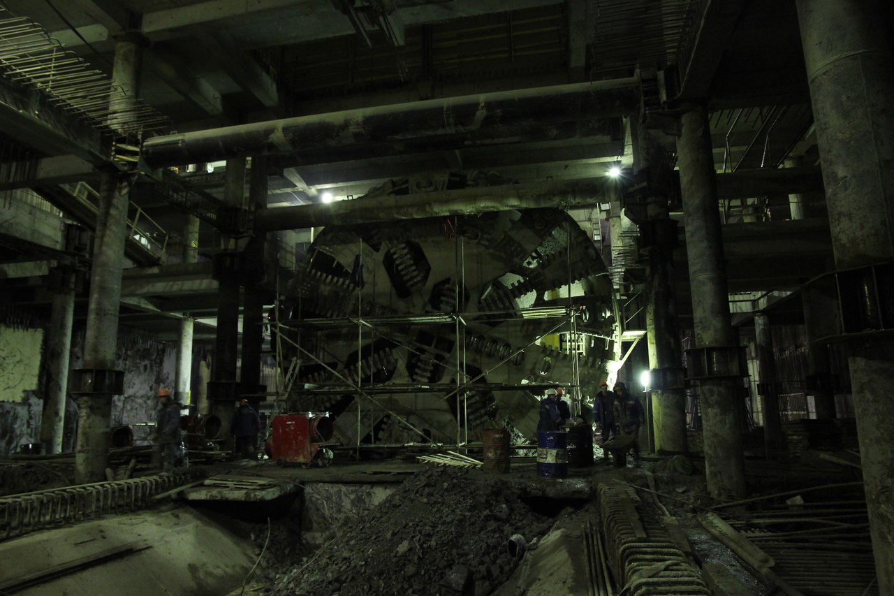 Станция метро Новокрестовская".Прохо́дческий щит.