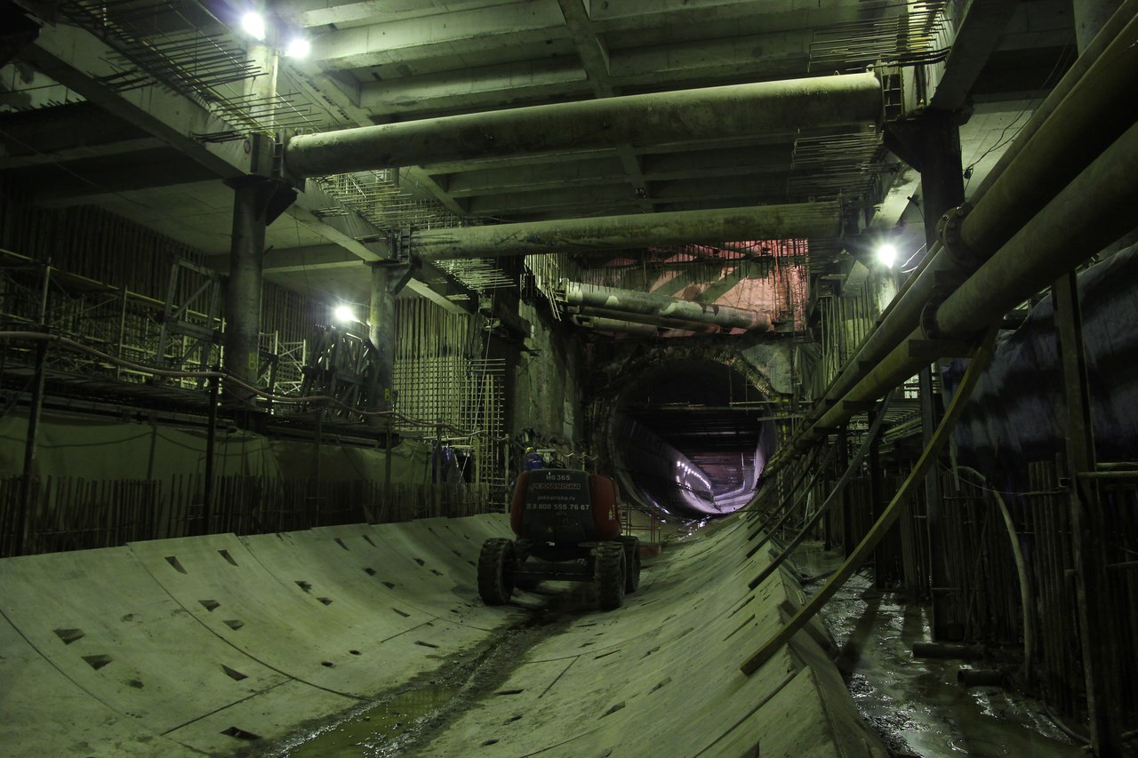 – Совместно с Управлением механизации мы монтируем полукольца в лотке станционного котлована. В субботу были поставлены первые два полукольца. Под тюбинги мы заливаем бетон, обеспечивая таким образом первоначальную жесткость конструктива. В дальнейшем полукольца будут полностью заливаться бетоном – вместе с лотком, образуя ровное основание для укладки рельсошпальной решетки. Параллельно мы будем наращивать основные коммуникации – трубопровод подачи воды и водоотлив.