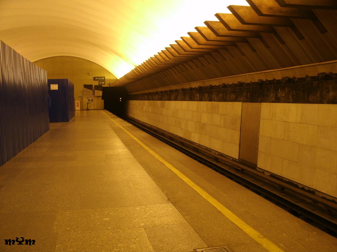 ИМХО, всё же лучше, чем на Пионерской. Здесь хотя бы нет тех чудовищных зазоров между плитами. А там издали незаметно, зато из окна вагона сразу в глаза бросаются