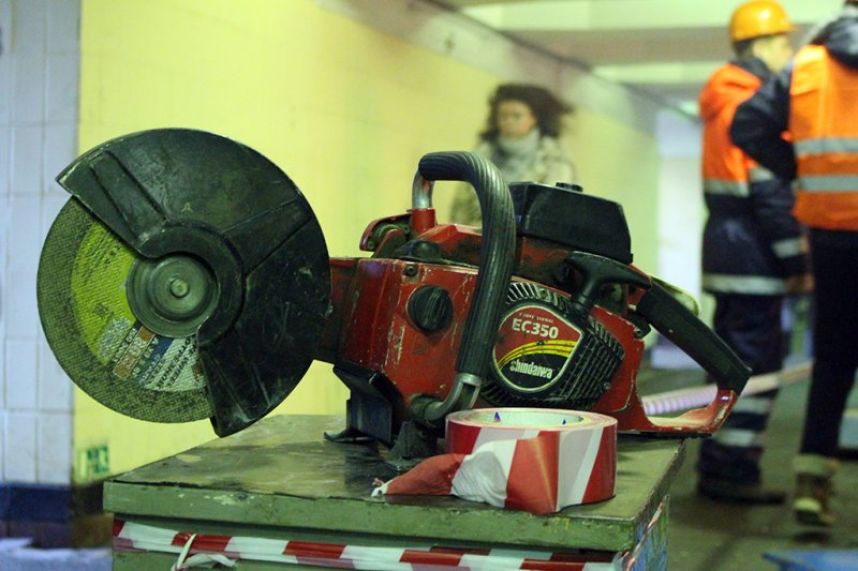 - средний эскалатор не доделан, огорожен сеткой;